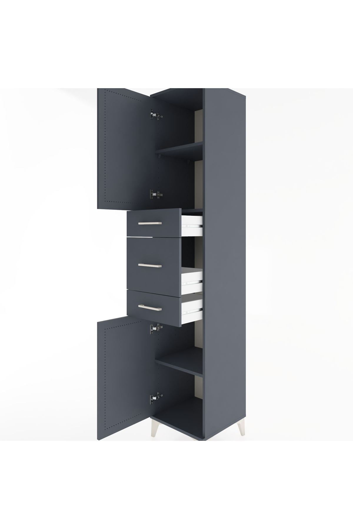 Hyperion Dolap 3 Raflı 3 Çekmeceli 2 Kapaklı 44x44x221 Antrasit-Antrasit