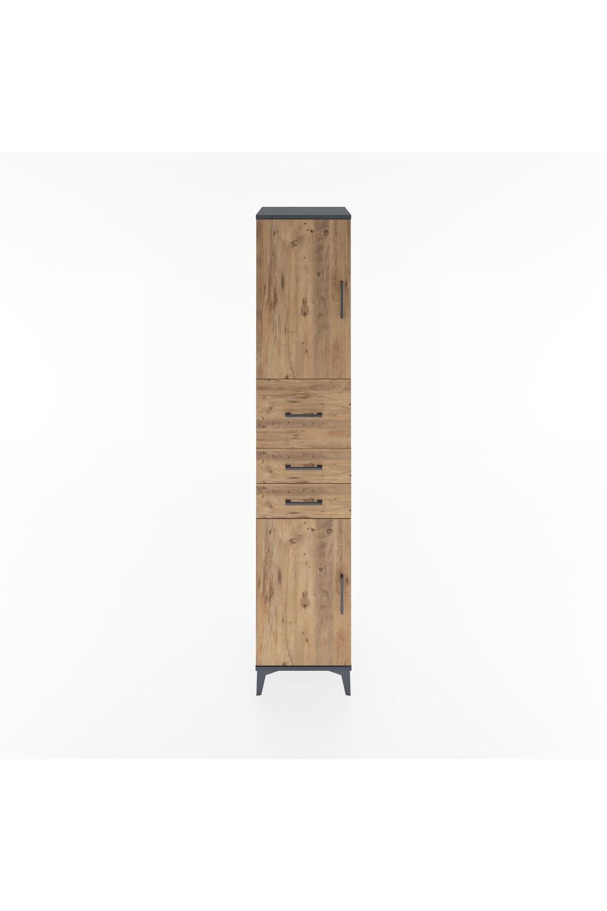 Hyperion Dolap 3 Raflı 3 Çekmeceli 2 Kapaklı 44x44x221 Antrasit-Çam