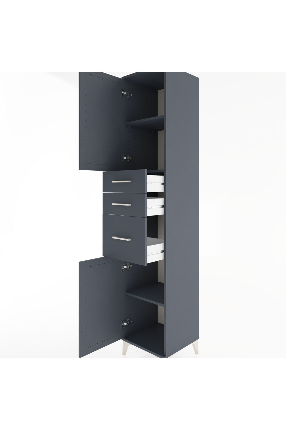 Hyperion Dolap 3 Raflı 3 Çekmeceli 2 Kapaklı 44x44x221 Antrasit-Antrasit