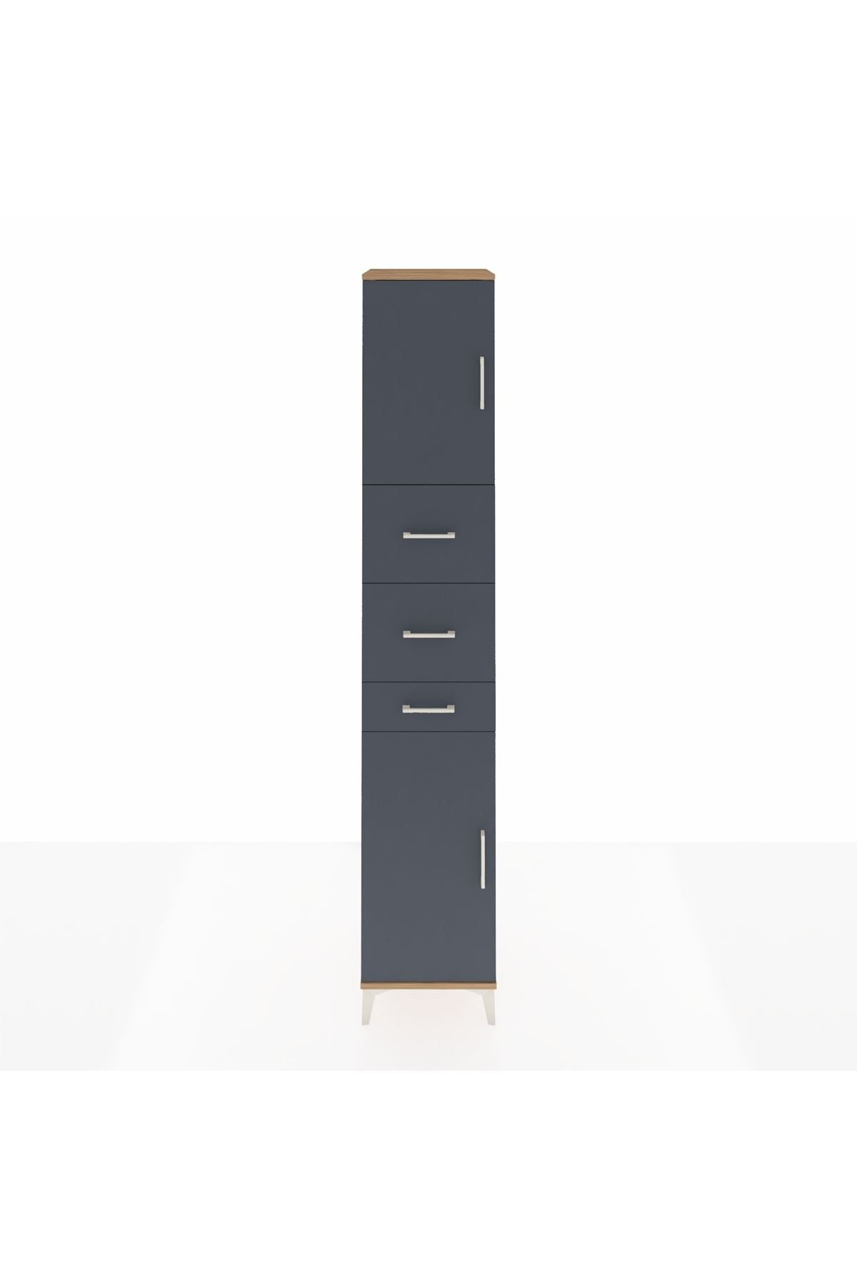Hyperion Dolap 3 Raflı 3 Çekmeceli 2 Kapaklı 44x44x243 Çam-Antrasit