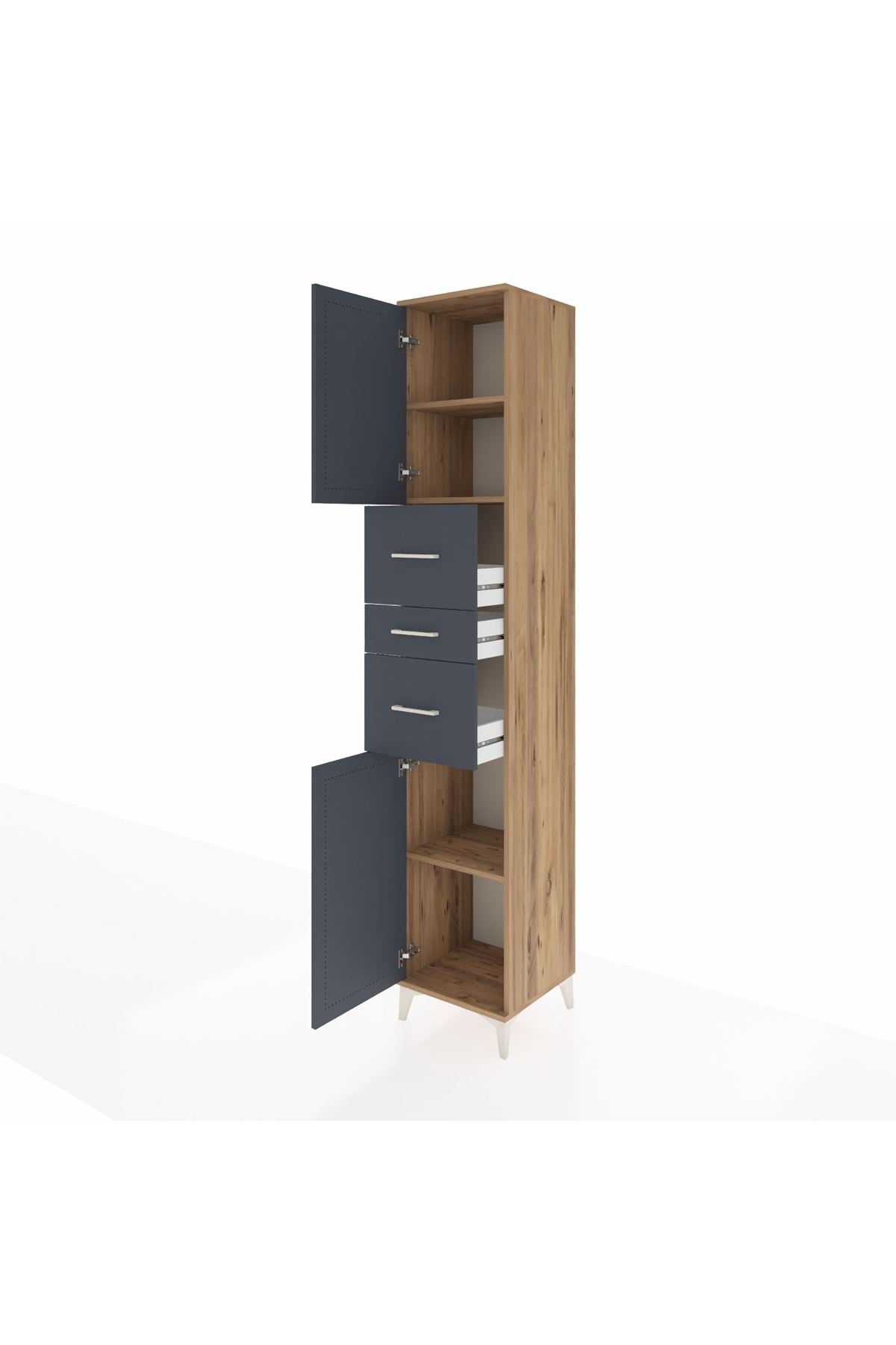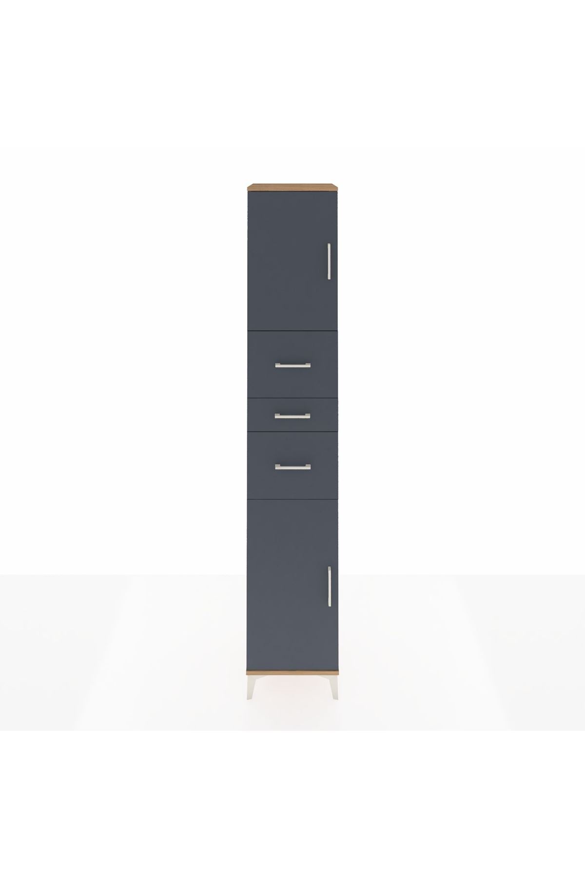 Hyperion Dolap 3 Raflı 3 Çekmeceli 2 Kapaklı 44x44x243 Çam-Antrasit