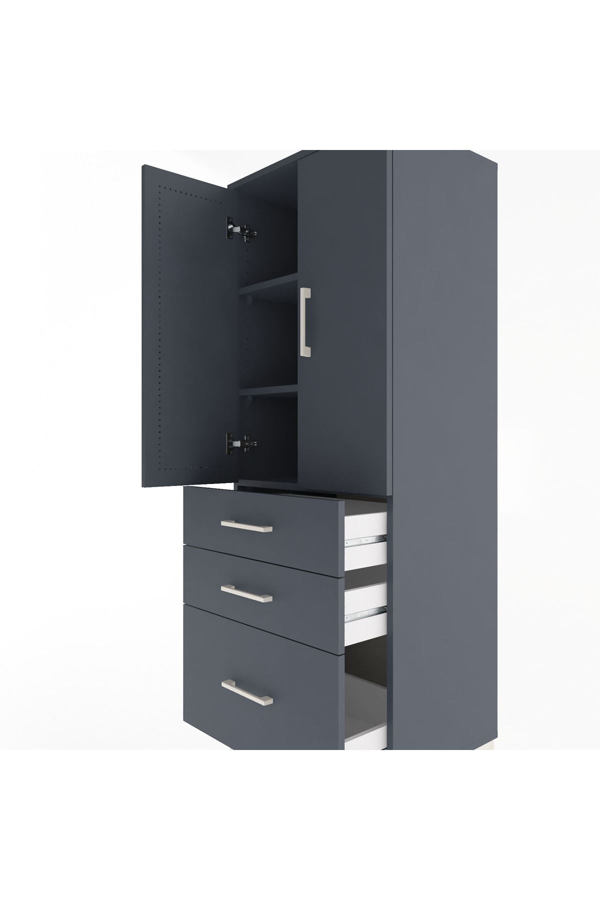 Hyperion Dolap 3 Raflı 3 Çekmeceli 2 Kapaklı 60x44x163 Antrasit-Antrasit