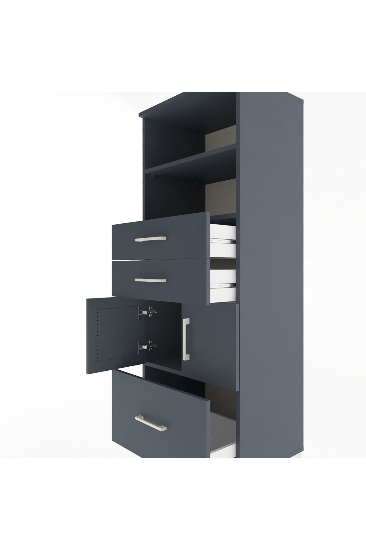 Hyperion Dolap 3 Raflı 3 Çekmeceli 2 Kapaklı 60x44x163 Antrasit-Antrasit