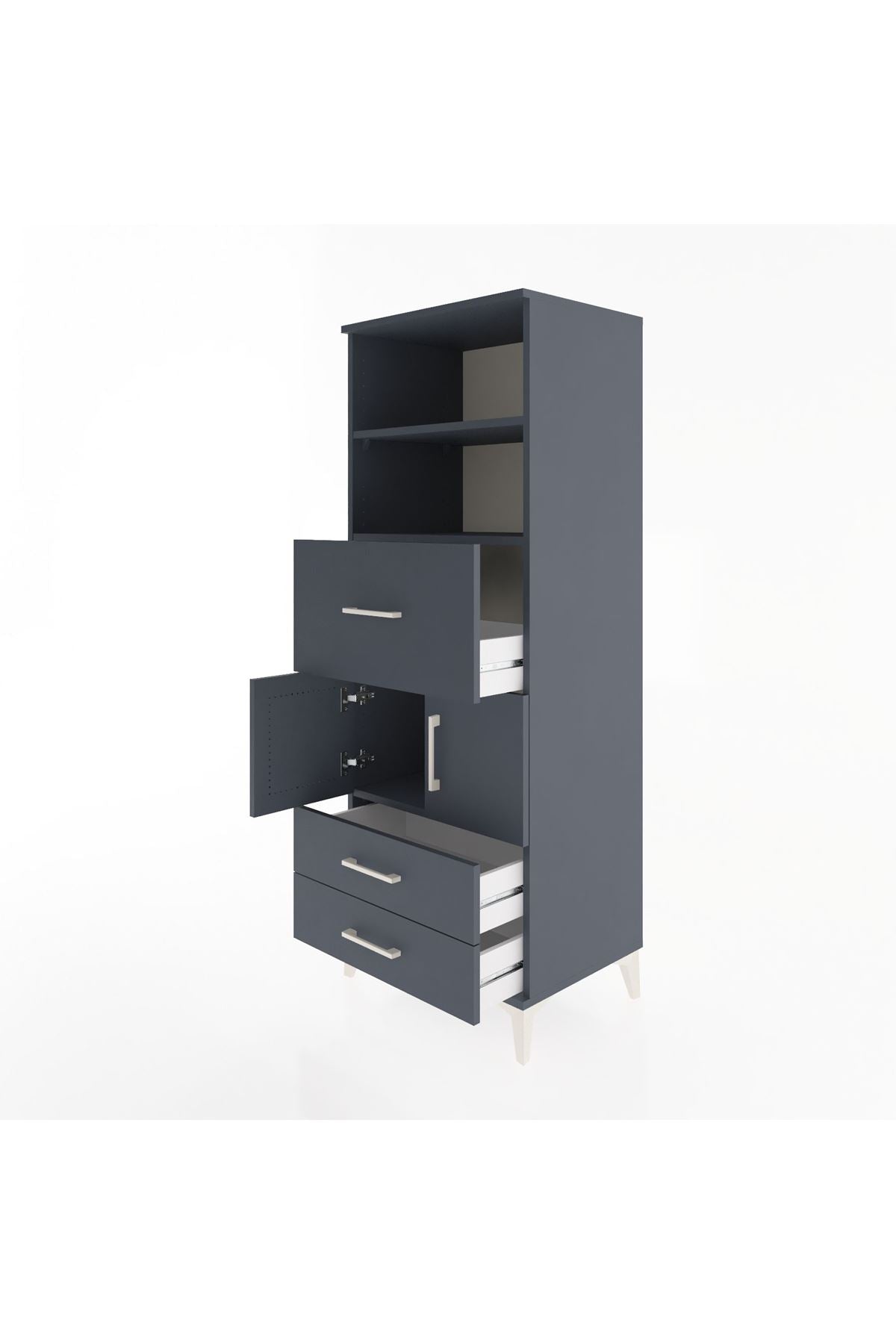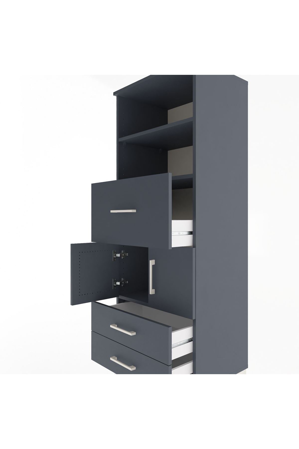 Hyperion Dolap 3 Raflı 3 Çekmeceli 2 Kapaklı 60x44x163 Antrasit-Antrasit