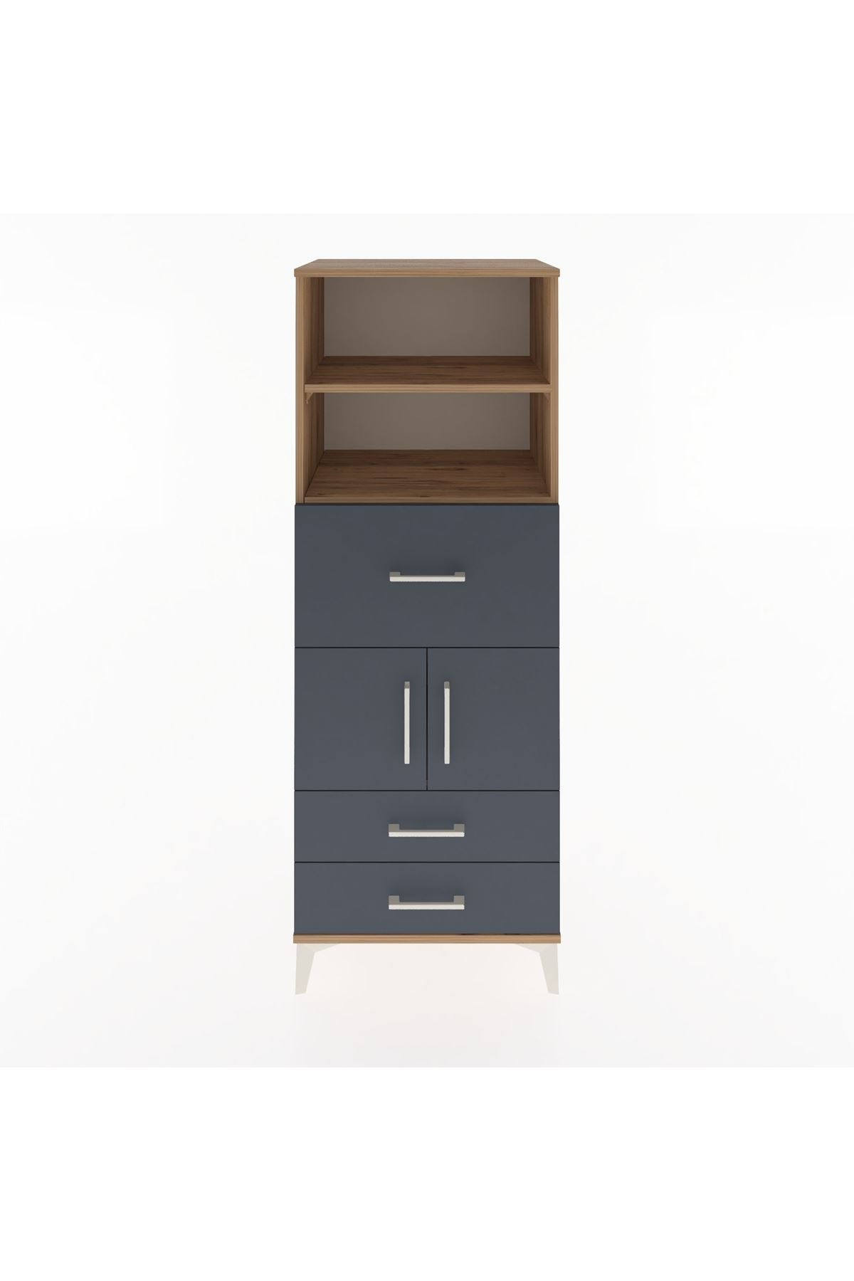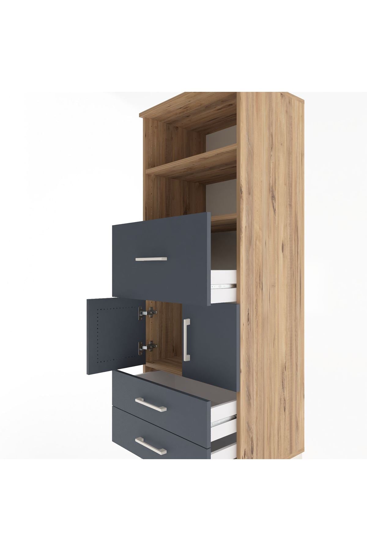 Hyperion Dolap 3 Raflı 3 Çekmeceli 2 Kapaklı 60x44x163 Çam-Antrasit