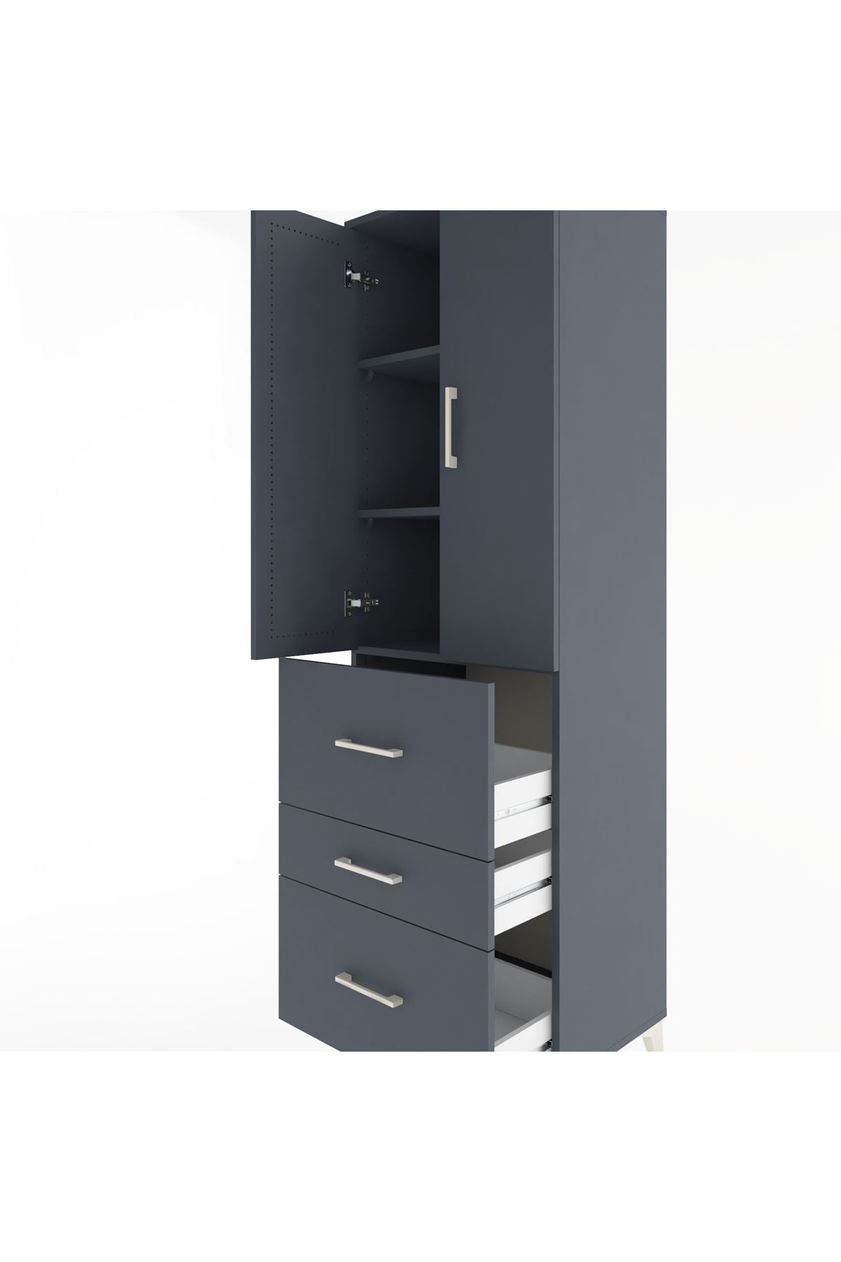 Hyperion Dolap 3 Raflı 3 Çekmeceli 2 Kapaklı 60x44x195 Antrasit-Antrasit