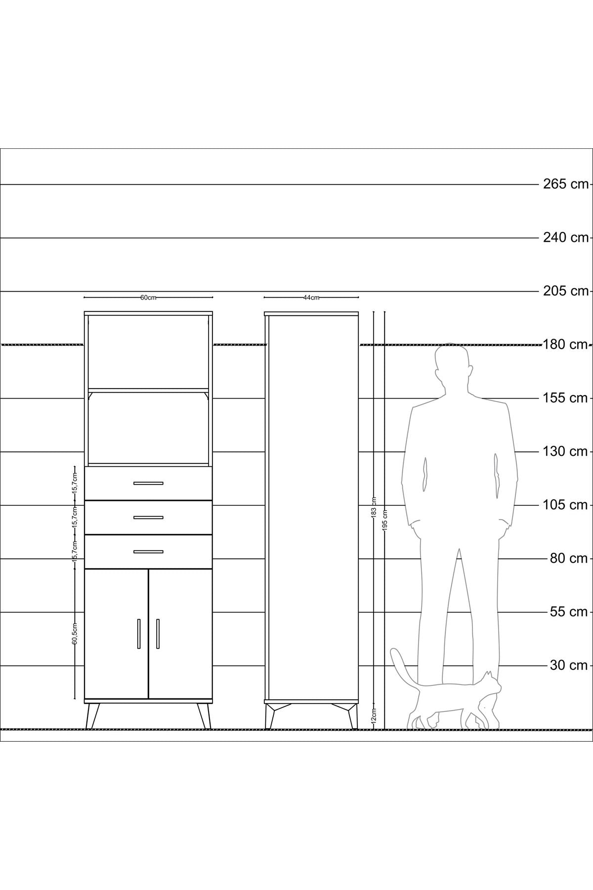 Hyperion Dolap 3 Raflı 3 Çekmeceli 2 Kapaklı 60x44x195 Antrasit-Aytaşı