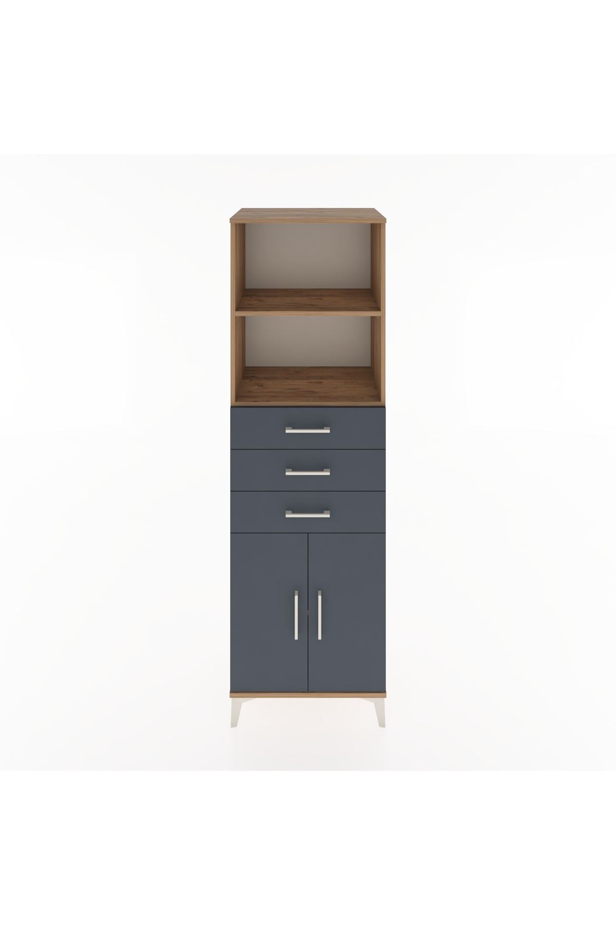 Hyperion Dolap 3 Raflı 3 Çekmeceli 2 Kapaklı 60x44x195 Çam-Antrasit