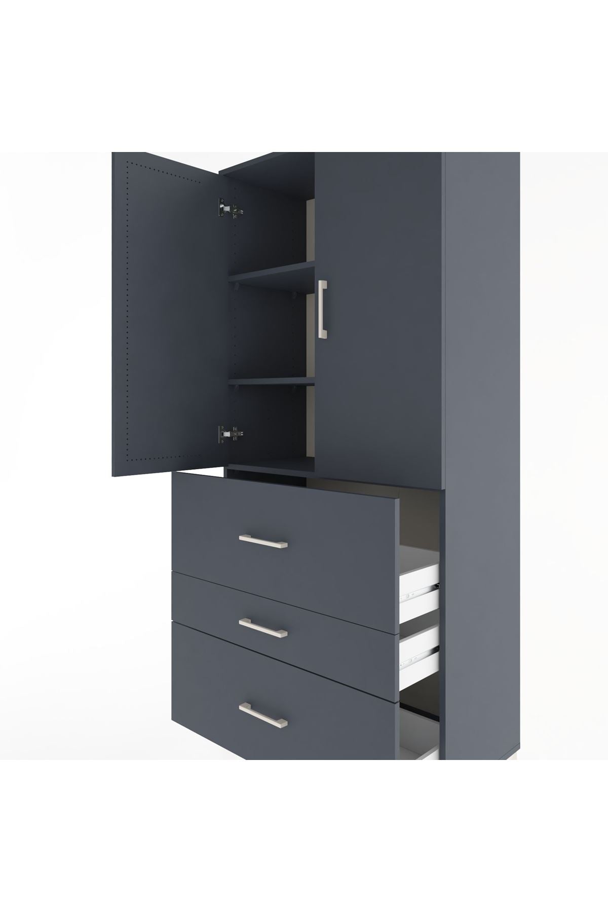 Hyperion Dolap 3 Raflı 3 Çekmeceli 2 Kapaklı 88x44x195 Antrasit-Antrasit