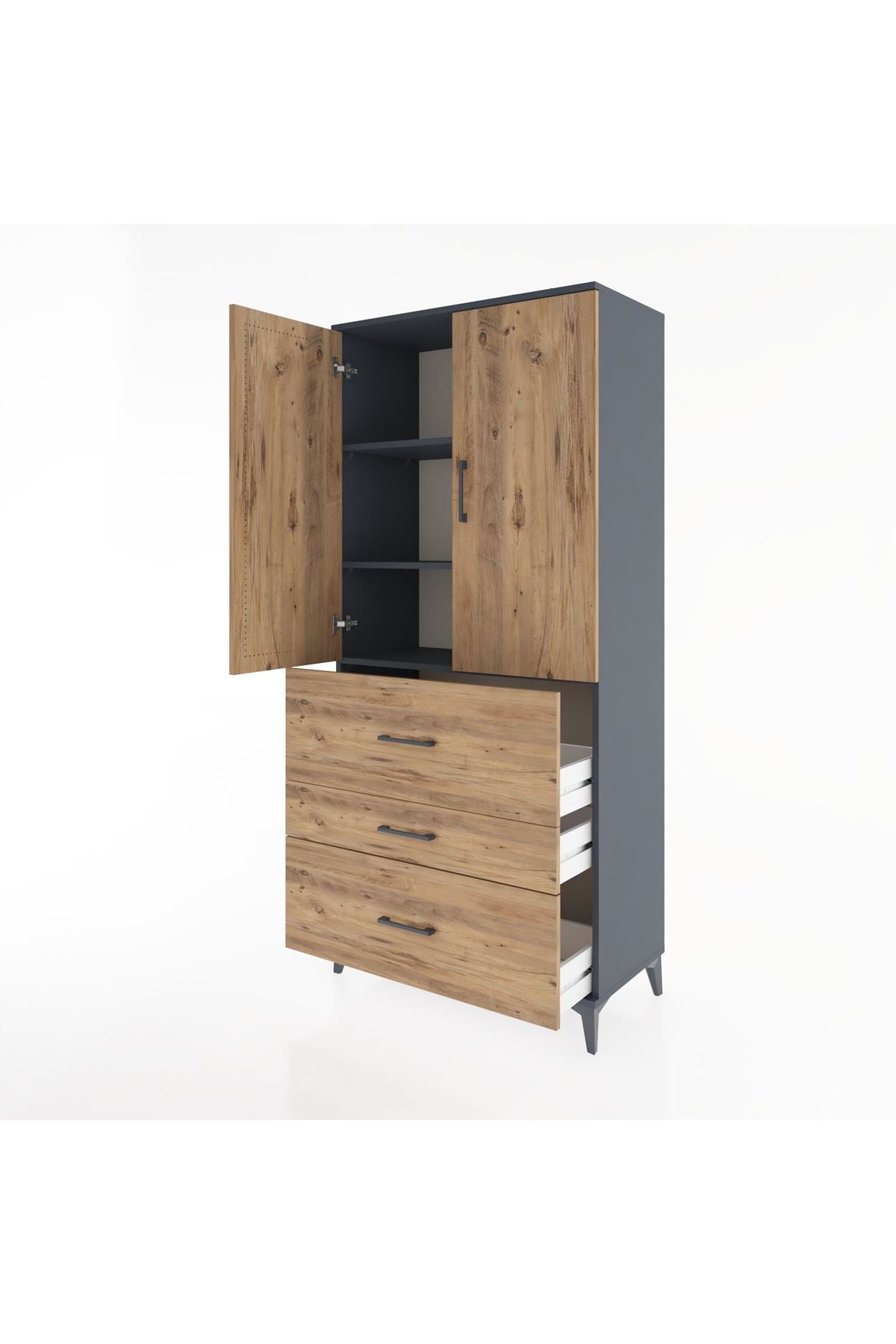 Hyperion Dolap 3 Raflı 3 Çekmeceli 2 Kapaklı 88x44x195 Antrasit-Çam