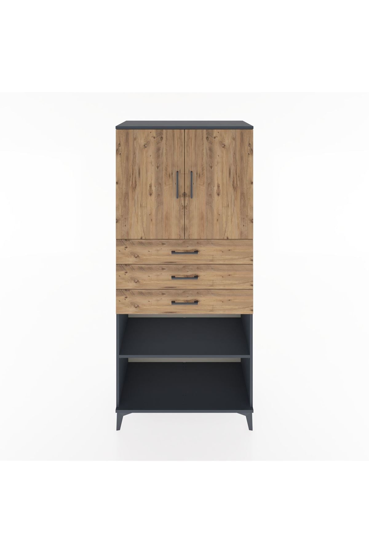 Hyperion Dolap 3 Raflı 3 Çekmeceli 2 Kapaklı 88x44x195 Antrasit-Çam