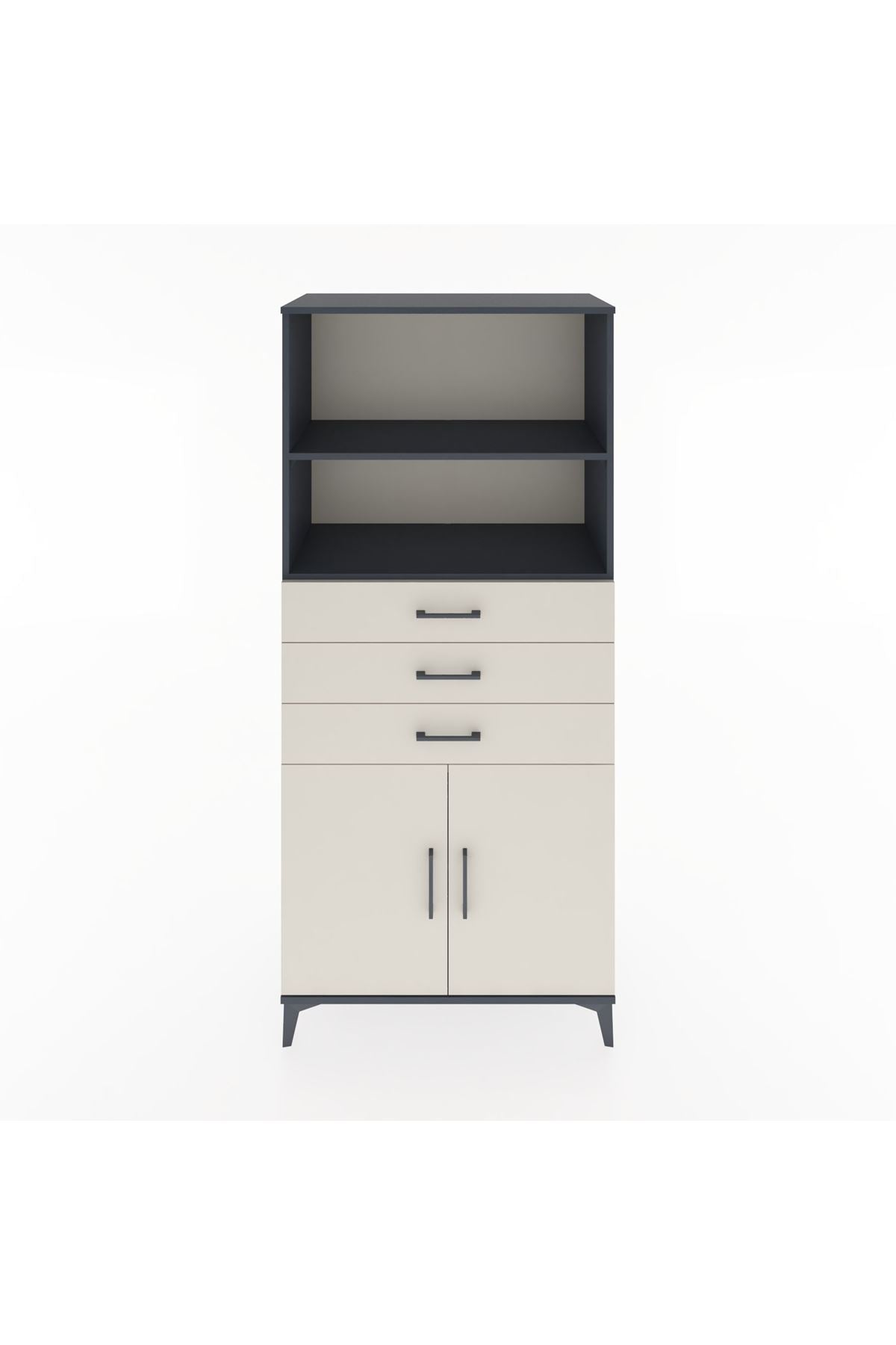 Hyperion Dolap 3 Raflı 3 Çekmeceli 2 Kapaklı 88x44x195 Antrasit-Aytaşı
