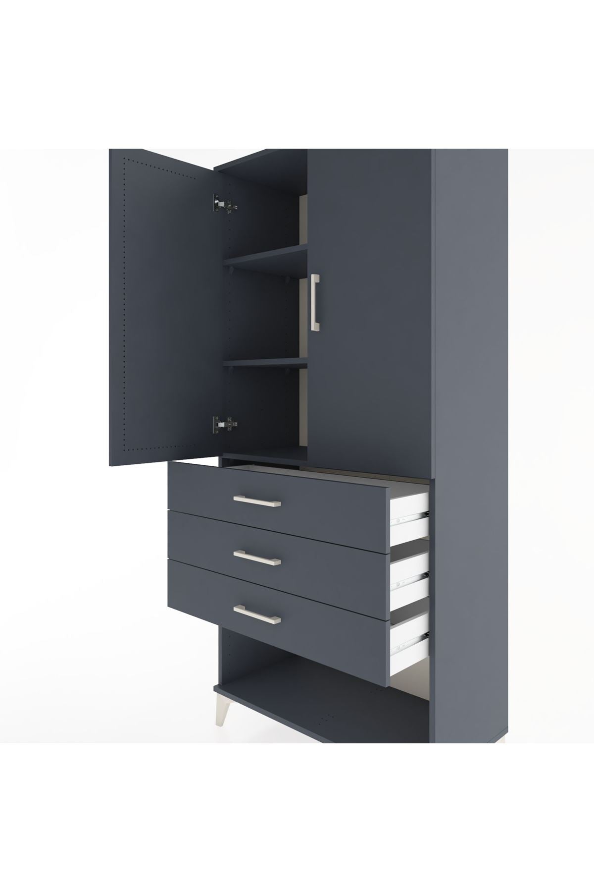 Hyperion Dolap 3 Raflı 3 Çekmeceli 2 Kapaklı 88x44x195 Antrasit-Antrasit