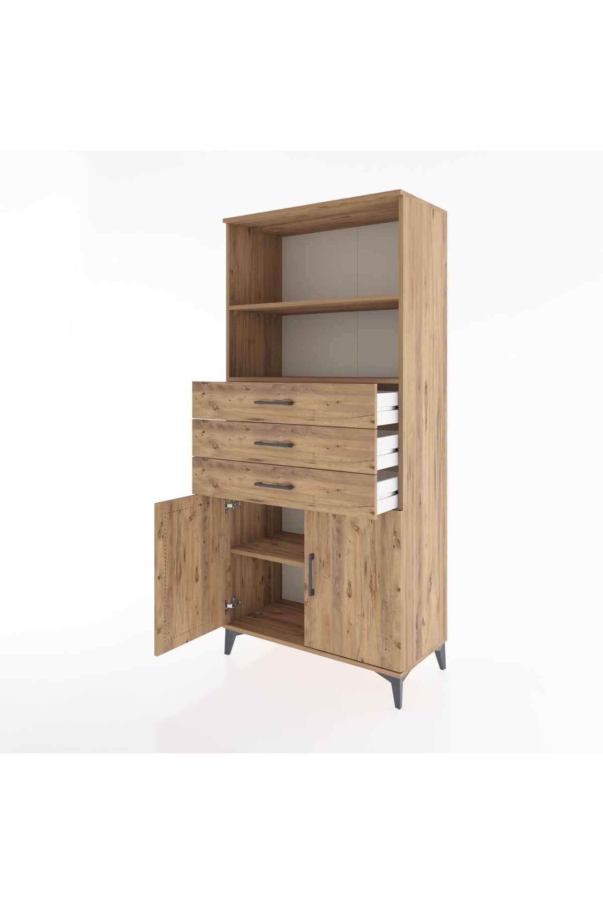 Hyperion Dolap 3 Raflı 3 Çekmeceli 2 Kapaklı 88x44x195 Çam-Çam