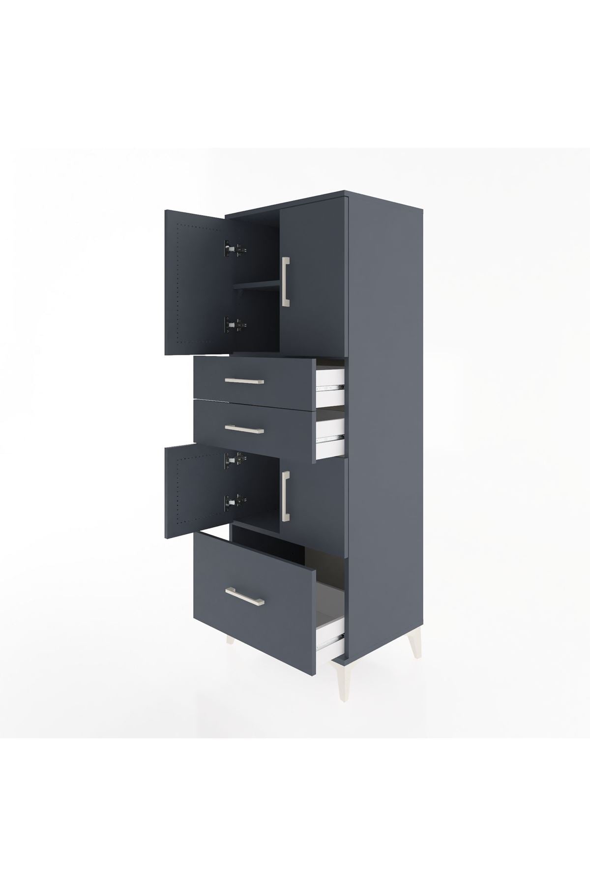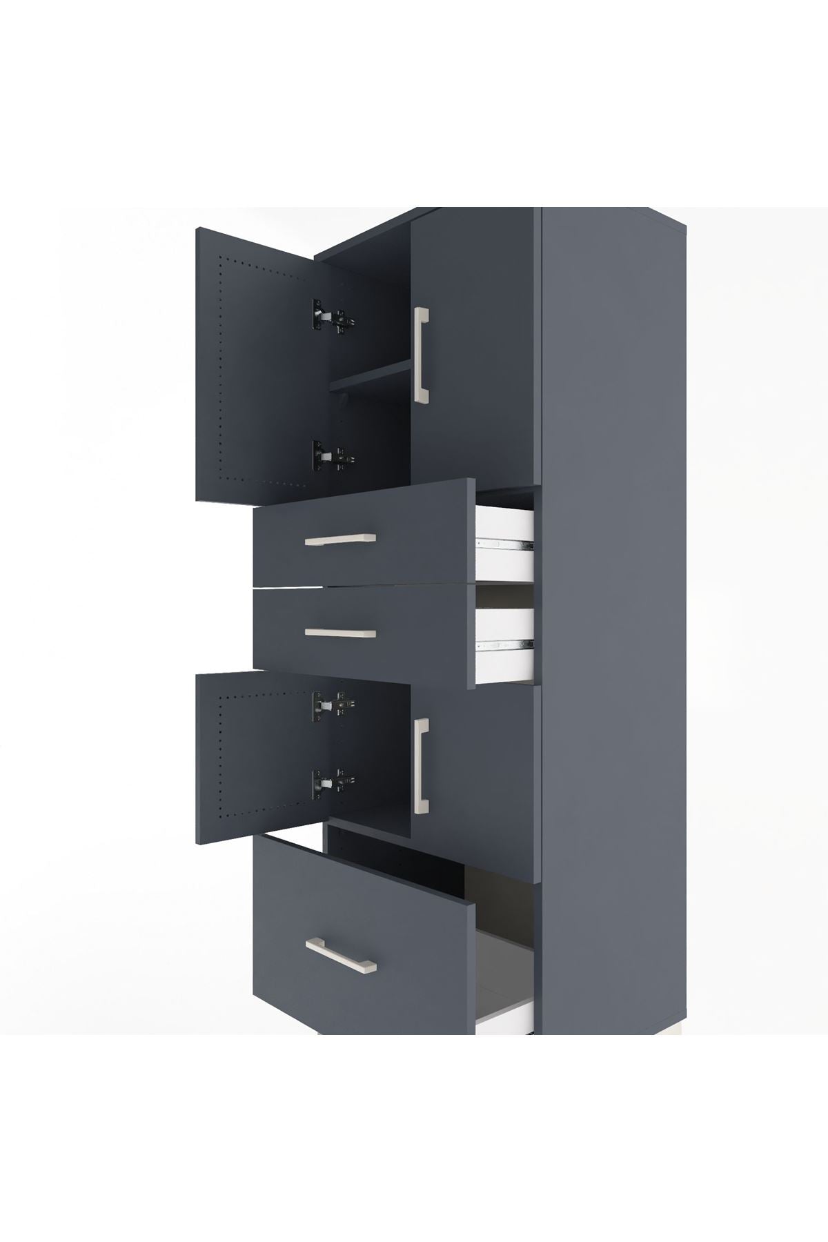 Hyperion Dolap 3 Raflı 3 Çekmeceli 4 Kapaklı 60x44x163 Antrasit-Antrasit