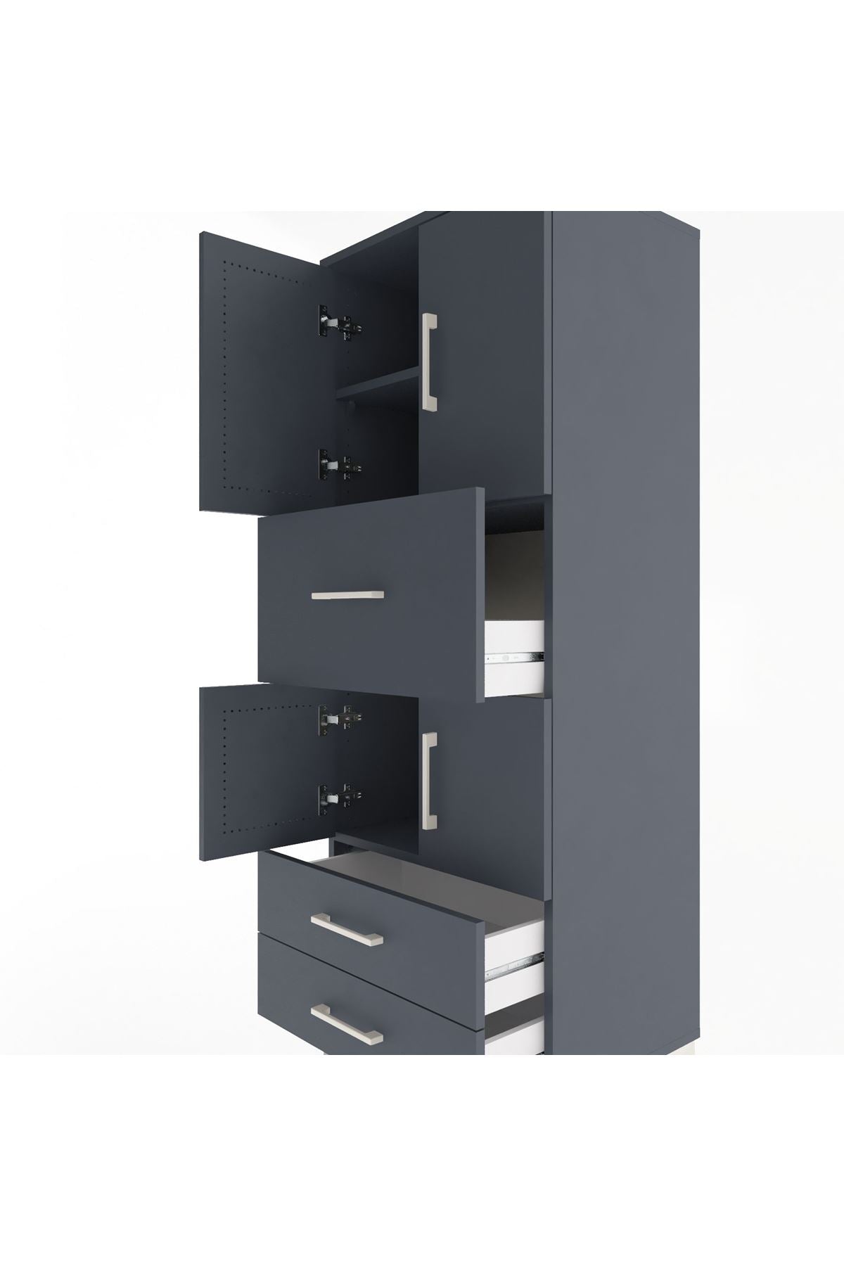 Hyperion Dolap 3 Raflı 3 Çekmeceli 4 Kapaklı 60x44x163 Antrasit-Antrasit