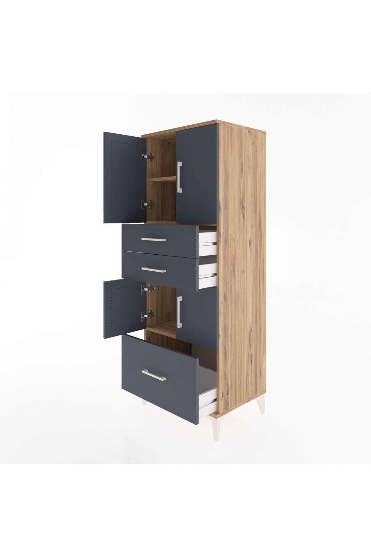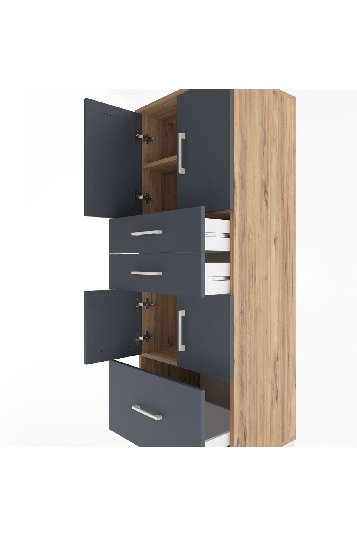 Hyperion Dolap 3 Raflı 3 Çekmeceli 4 Kapaklı 60x44x163 Çam-Antrasit