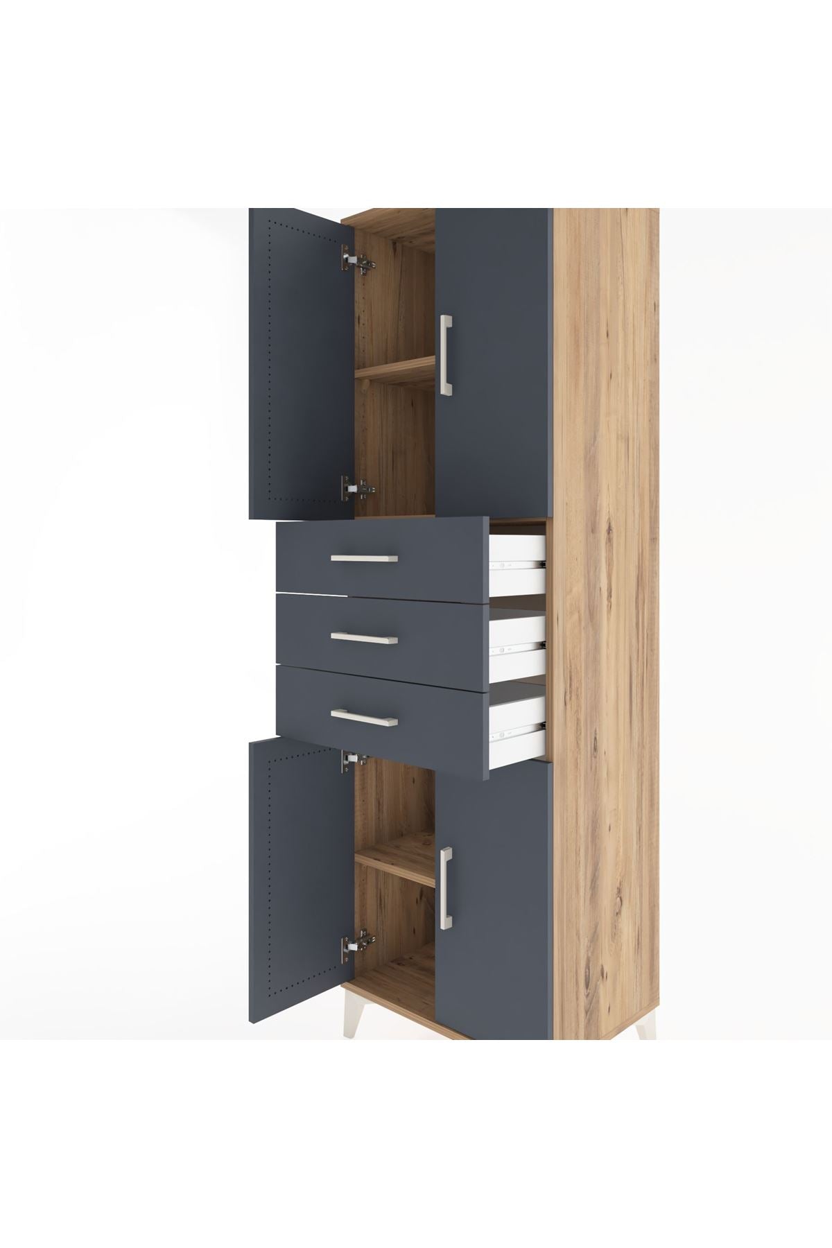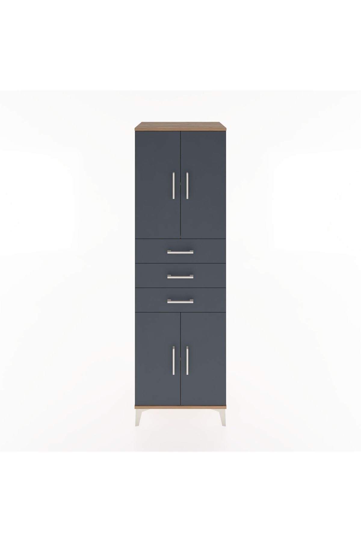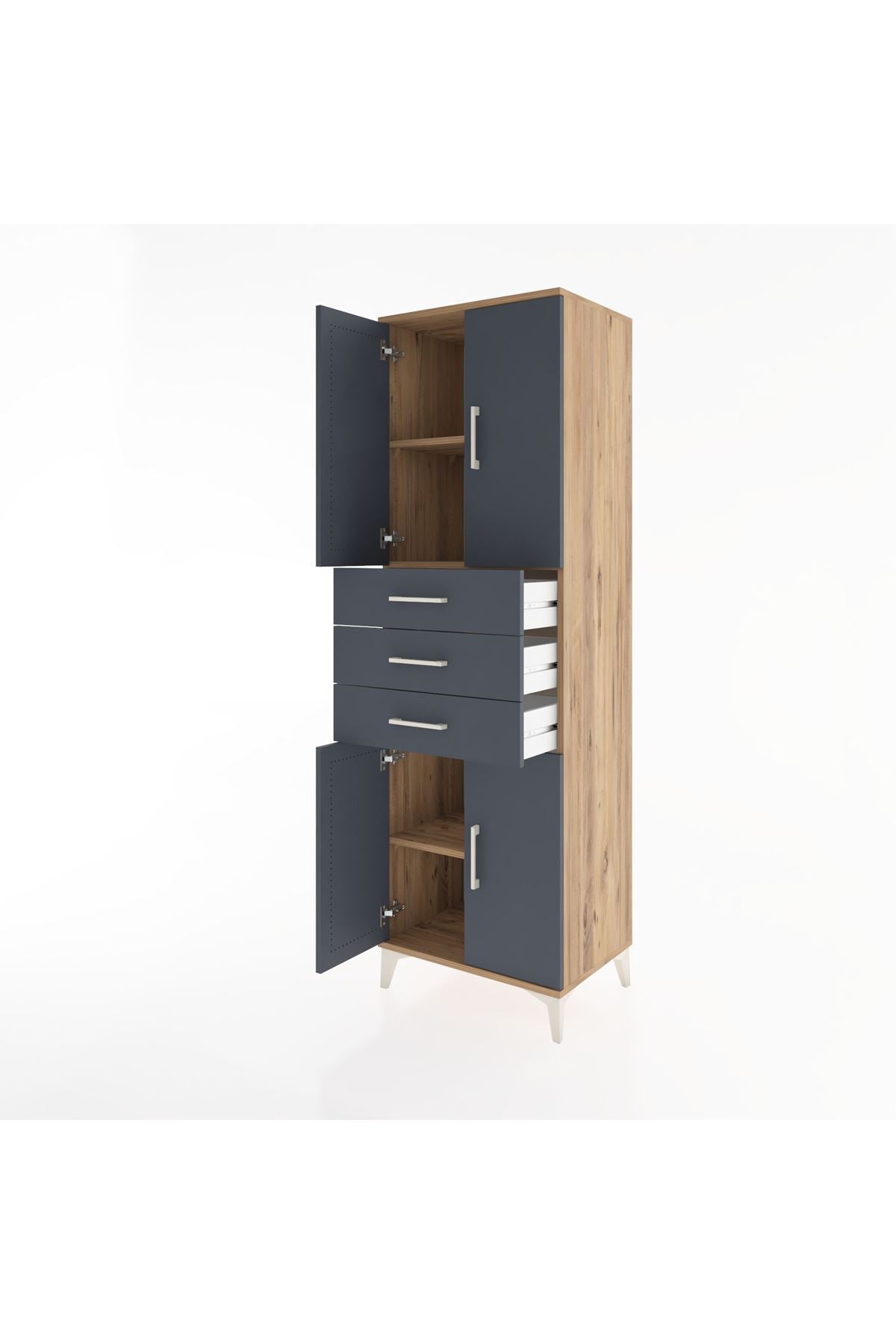 Hyperion Dolap 3 Raflı 3 Çekmeceli 4 Kapaklı 60x44x195 Çam-Antrasit