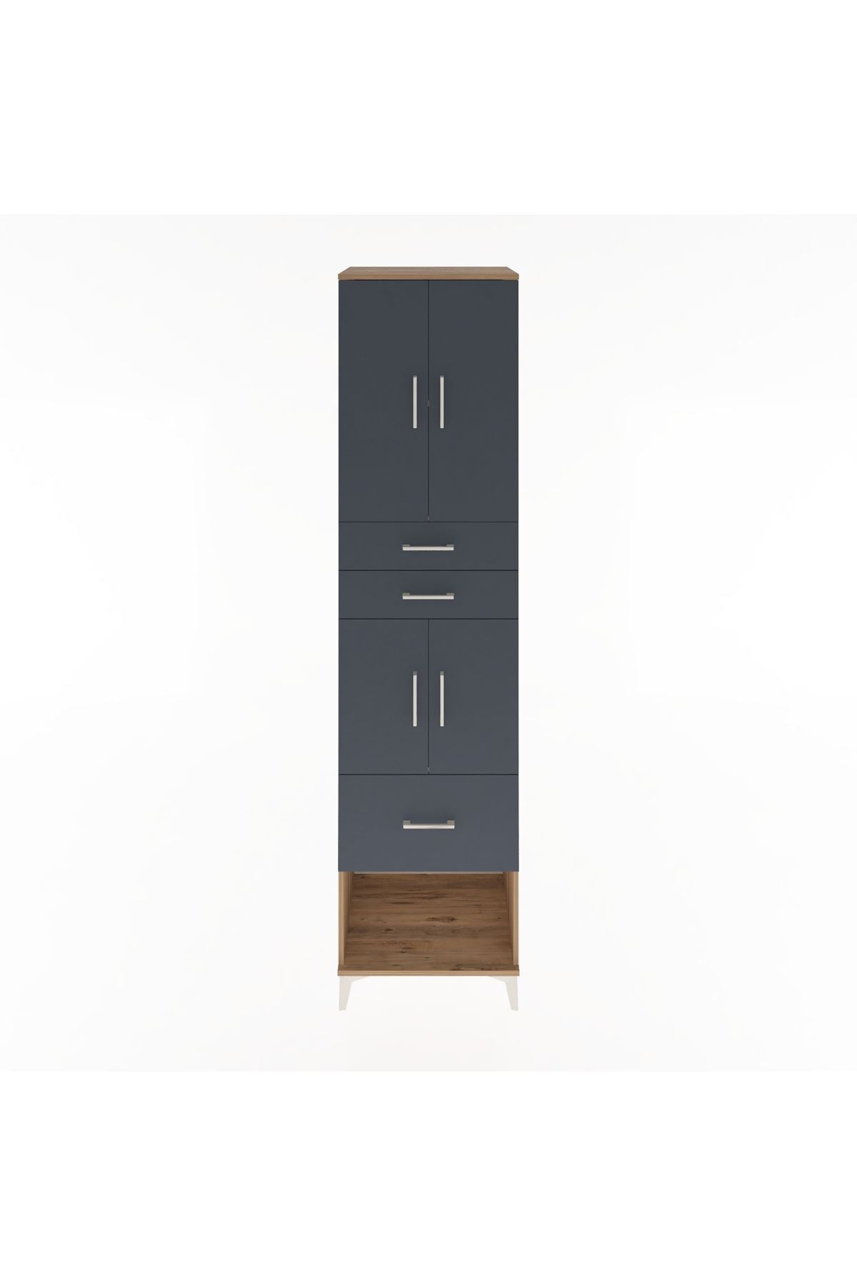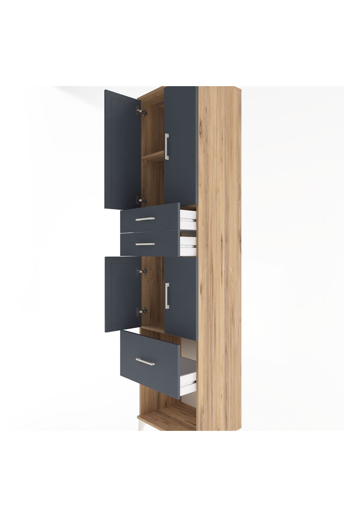Hyperion Dolap 3 Raflı 3 Çekmeceli 4 Kapaklı 60x44x243 Çam-Antrasit