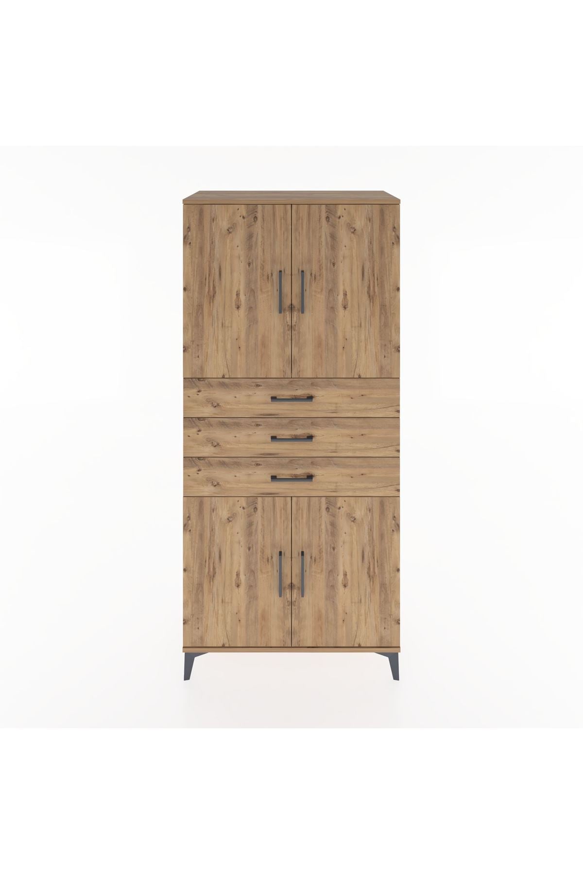 Hyperion Dolap 3 Raflı 3 Çekmeceli 4 Kapaklı 88x44x195 Çam-Çam