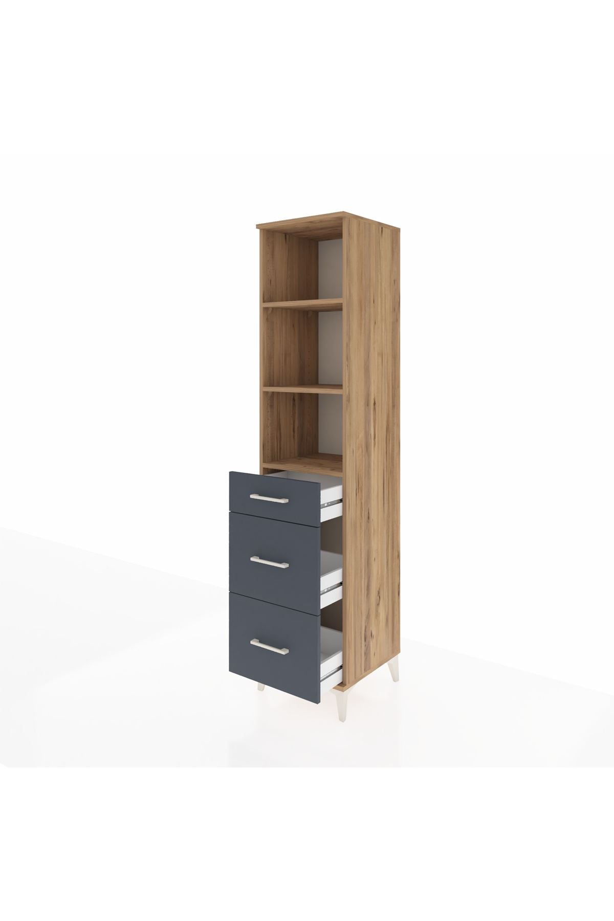 Hyperion Dolap 3 Raflı 3 Çekmeceli 44x44x195 Çam-Antrasit