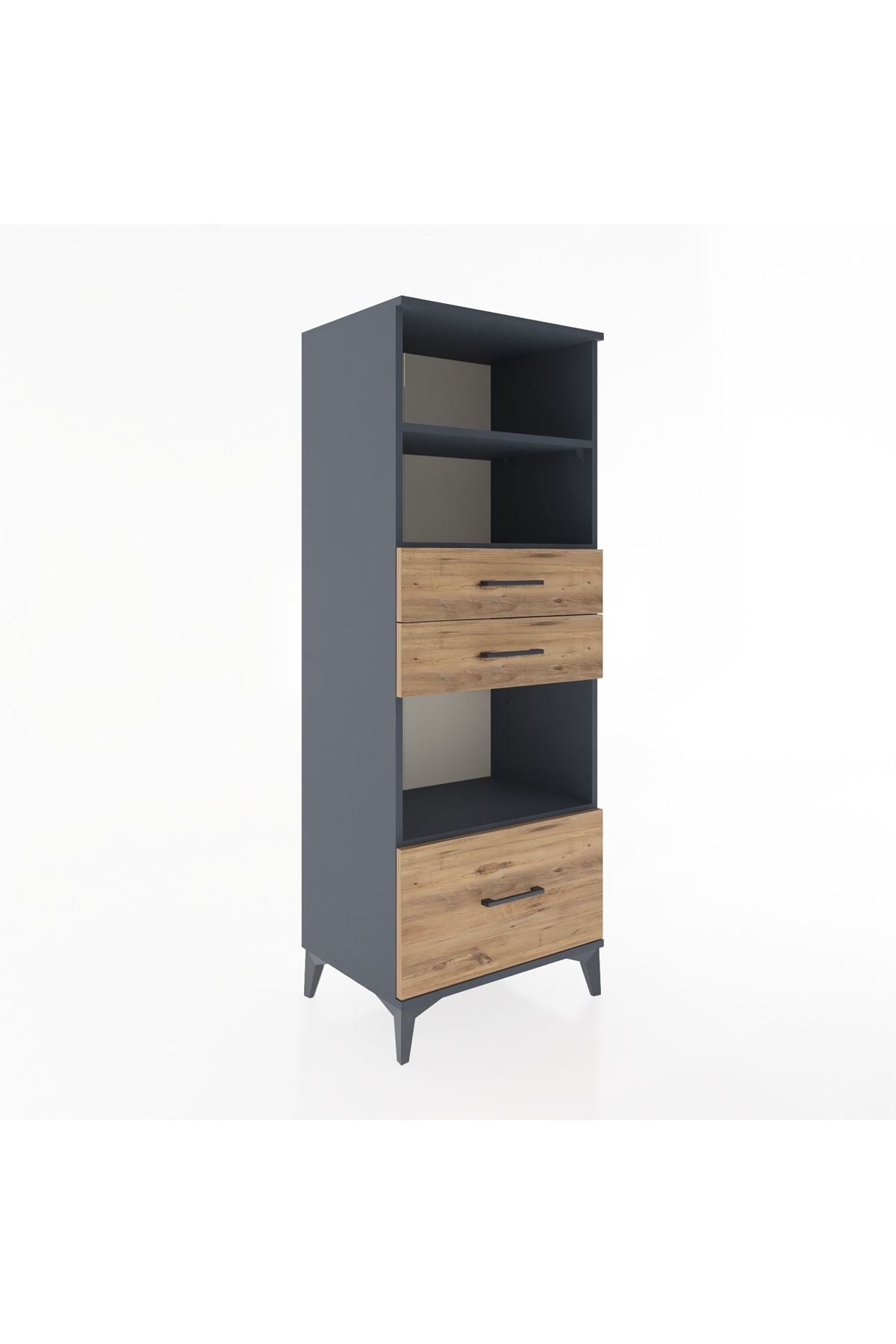 Hyperion Dolap 3 Raflı 3 Çekmeceli 60x44x163 Antrasit-Çam