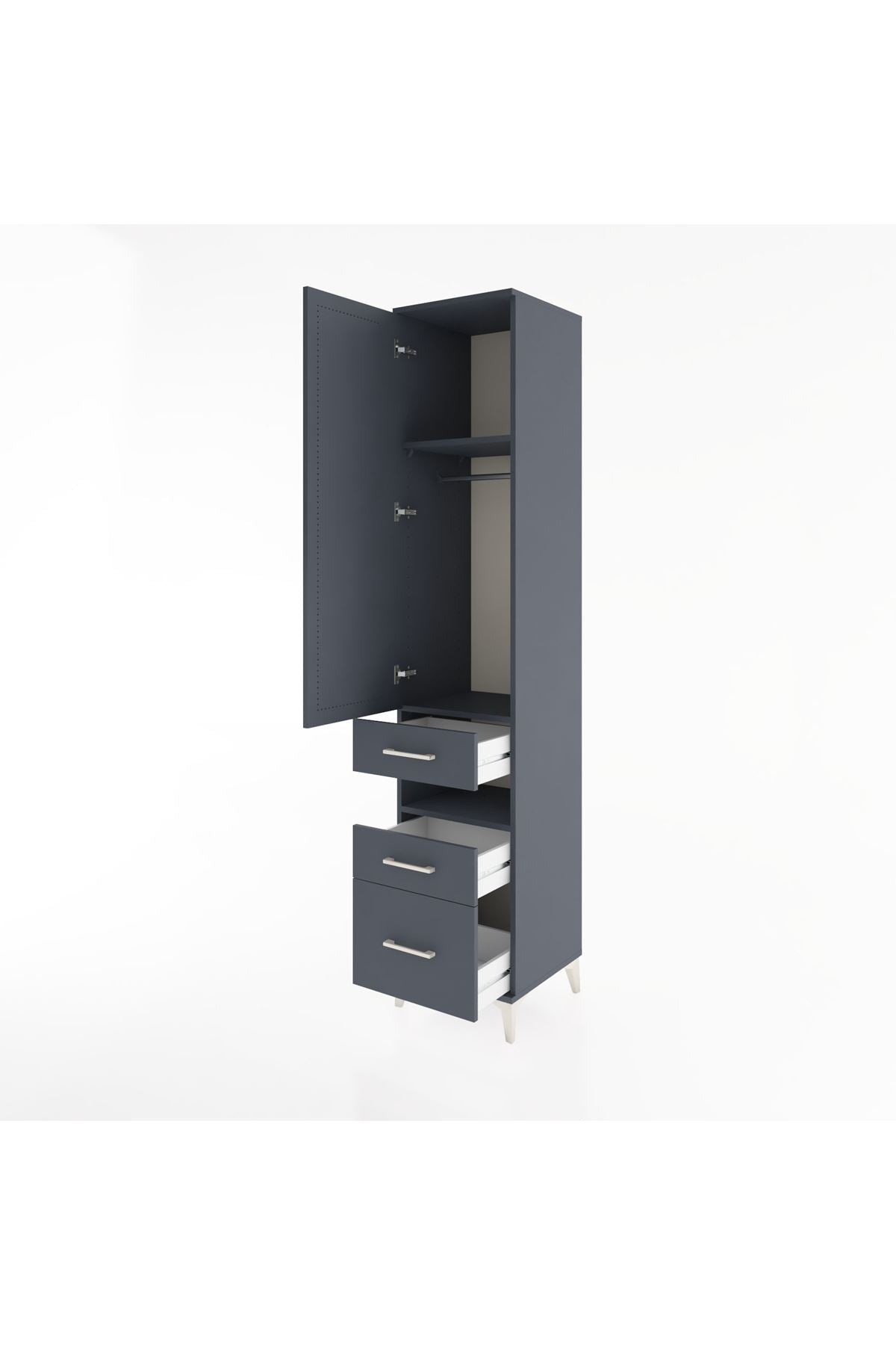 Hyperion Dolap 3 Raflı 3 Çekmeceli Tek Askılı 44x44x221 Antrasit-Antrasit