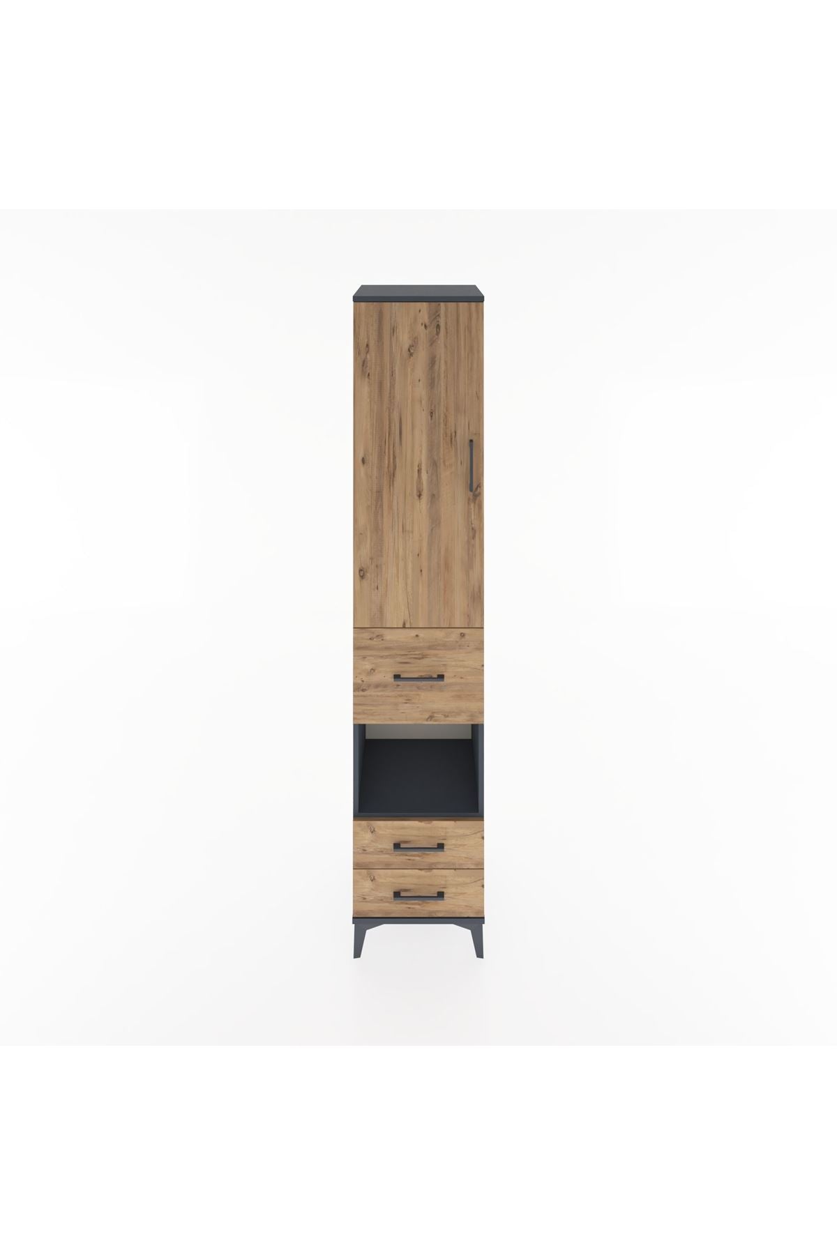 Hyperion Dolap 3 Raflı 3 Çekmeceli Tek Askılı 44x44x221 Antrasit-Çam