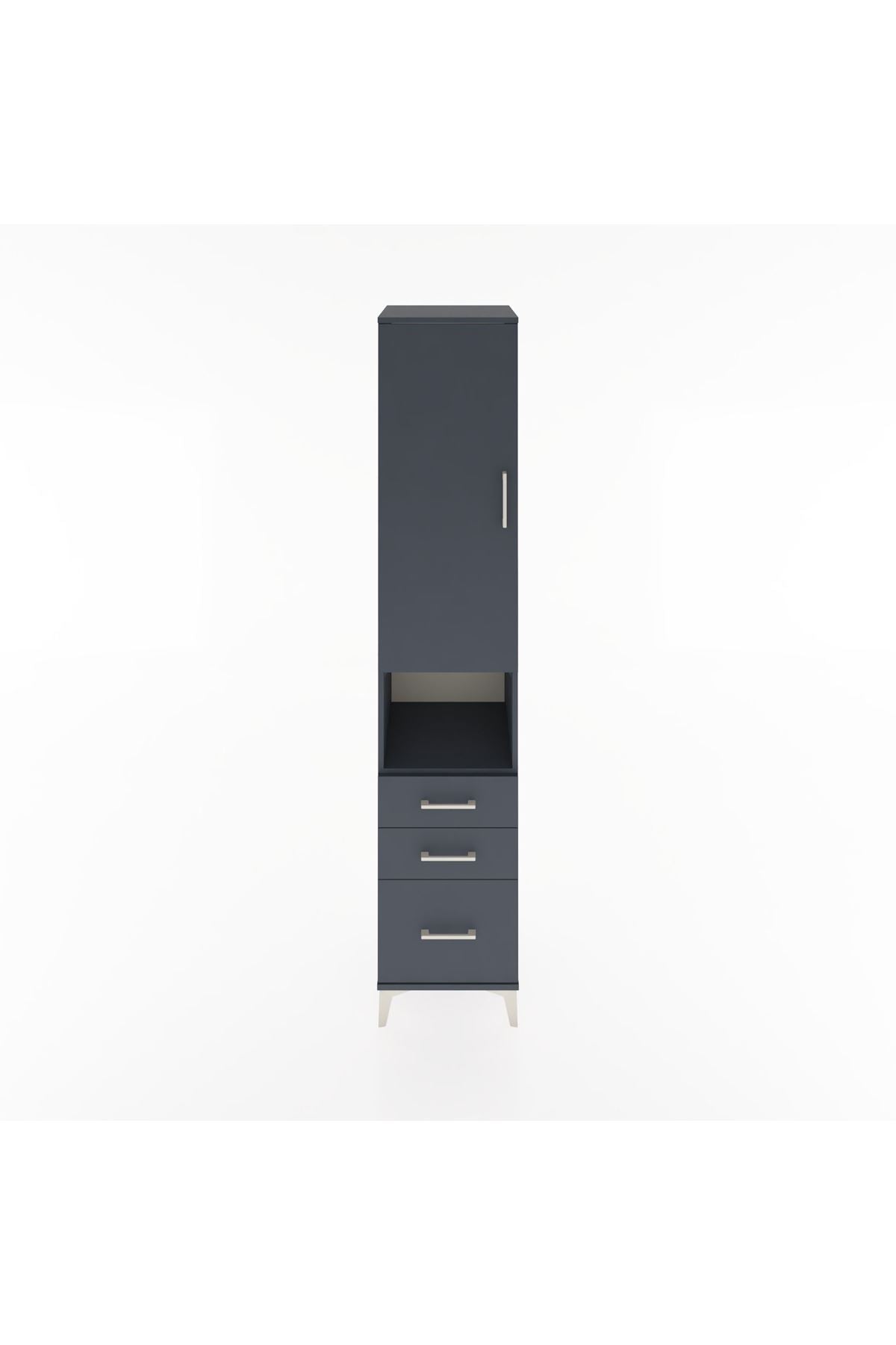 Hyperion Dolap 3 Raflı 3 Çekmeceli Tek Askılı 44x44x221 Antrasit-Antrasit
