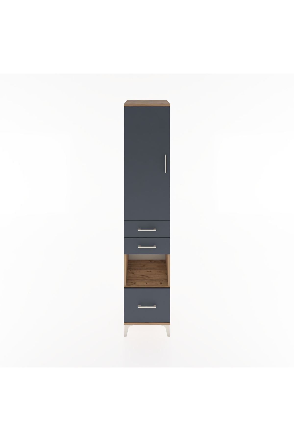 Hyperion Dolap 3 Raflı 3 Çekmeceli Tek Askılı 44x44x221 Çam-Antrasit