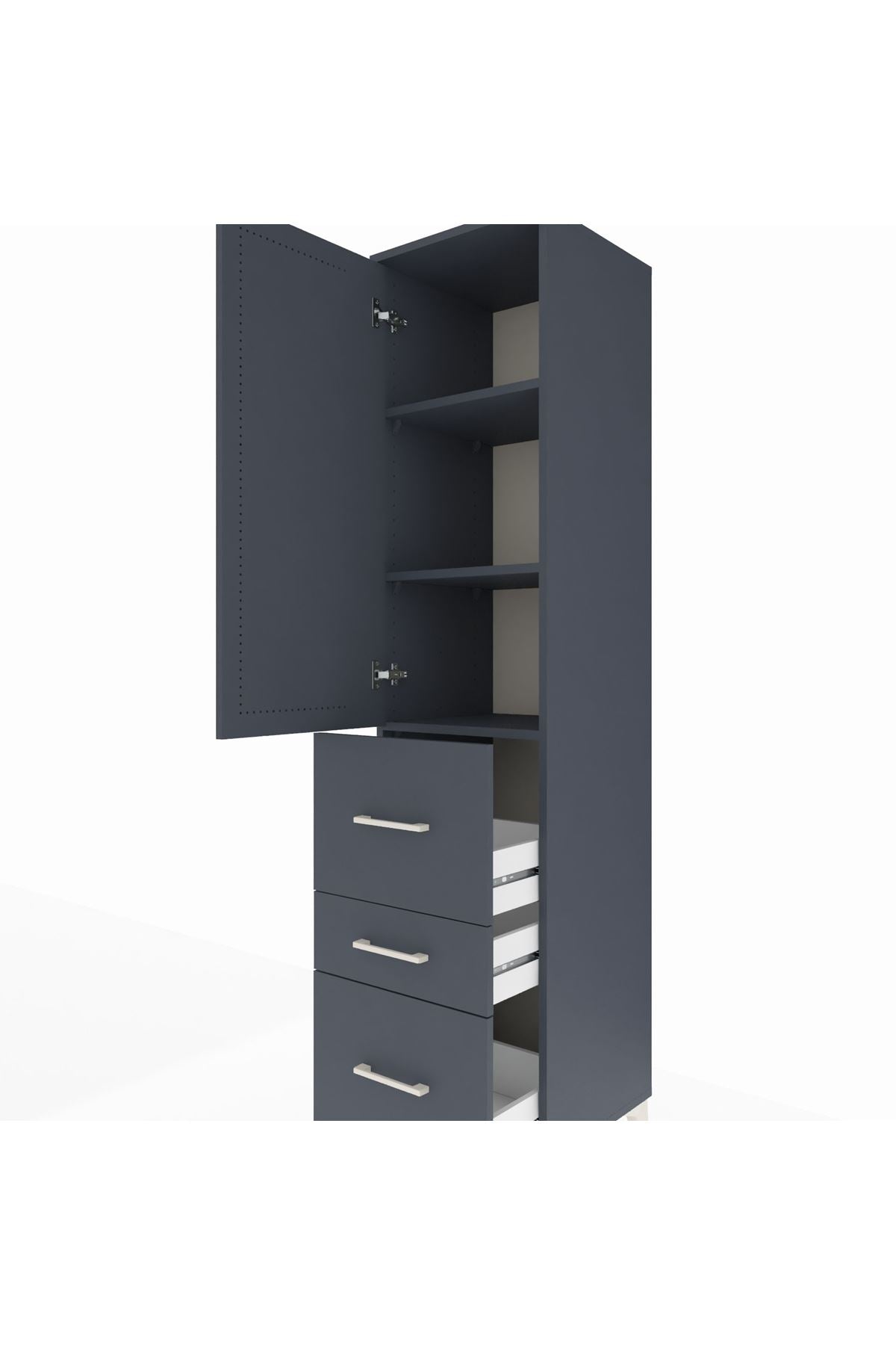 Hyperion Dolap 3 Raflı 3 Çekmeceli Tek Kapaklı 44x44x195 Antrasit-Antrasit