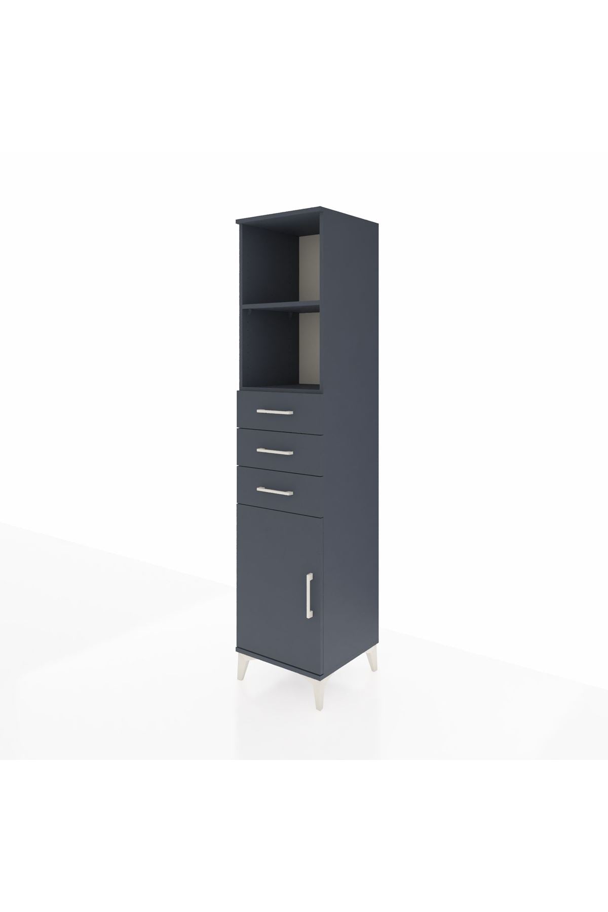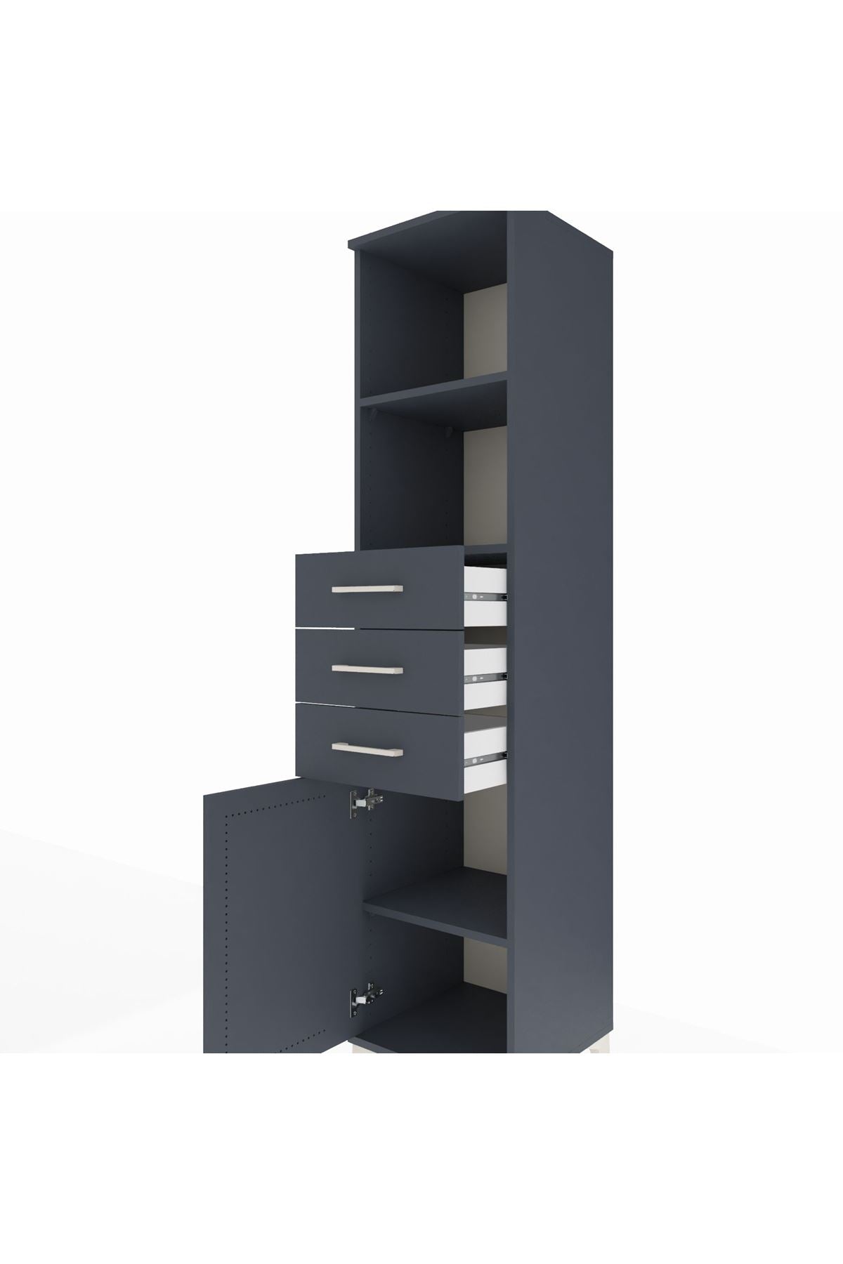 Hyperion Dolap 3 Raflı 3 Çekmeceli Tek Kapaklı 44x44x195 Antrasit-Antrasit