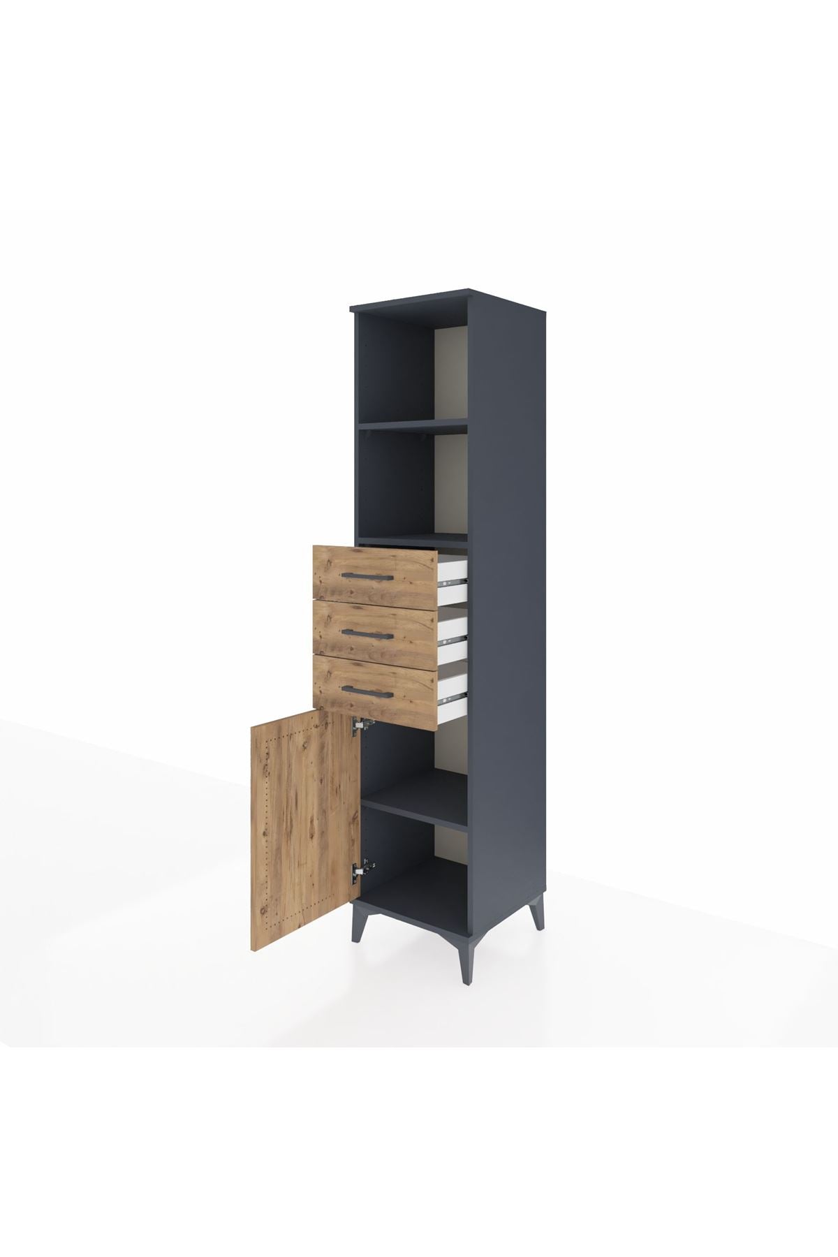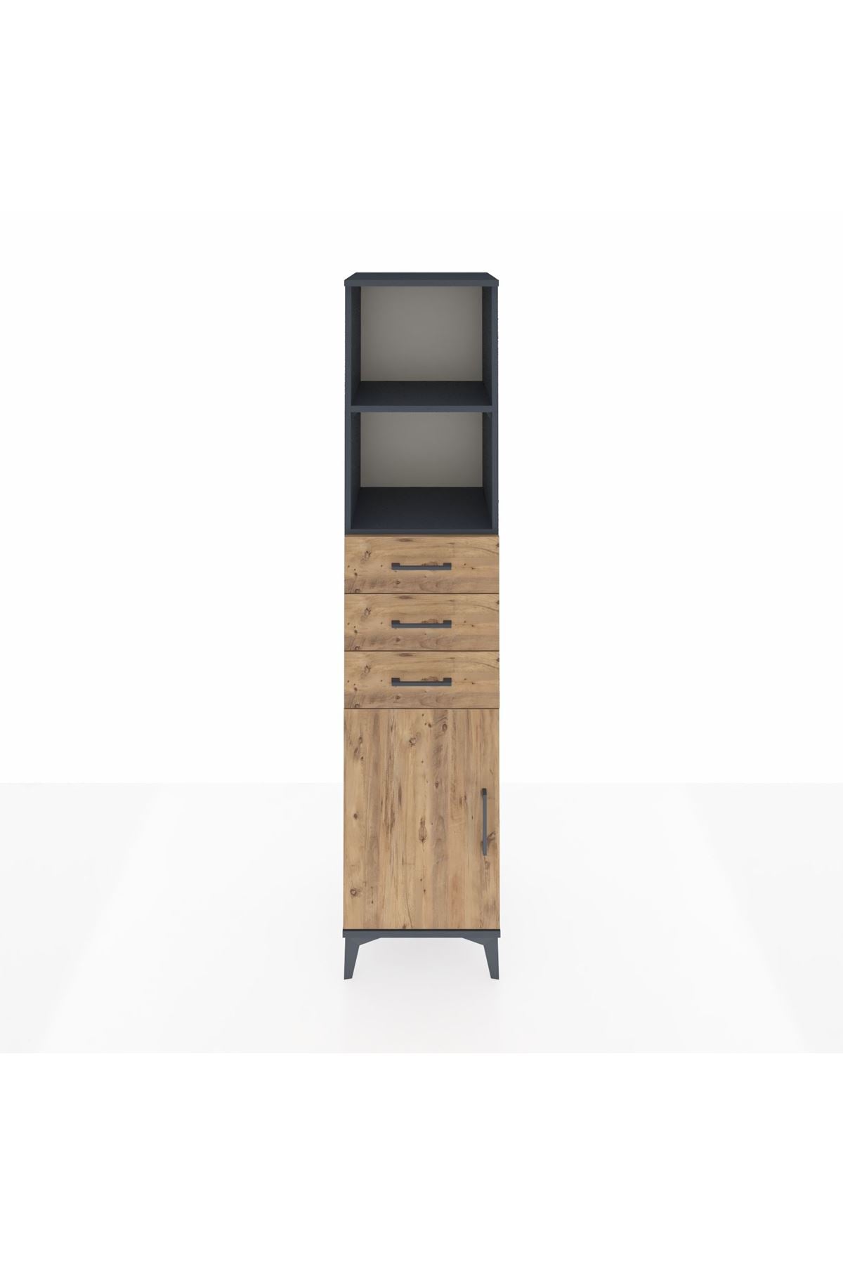 Hyperion Dolap 3 Raflı 3 Çekmeceli Tek Kapaklı 44x44x195 Antrasit-Çam