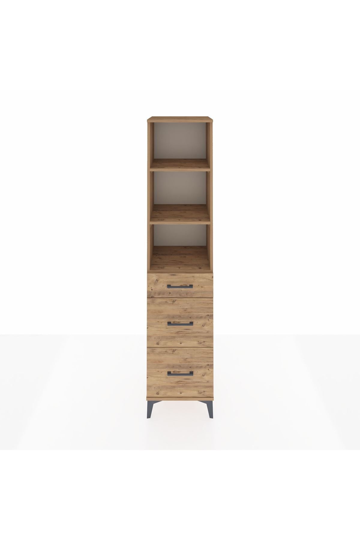 Hyperion Dolap 3 Raflı 3 Çekmeceli Tek Kapaklı 44x44x195 Çam-Çam