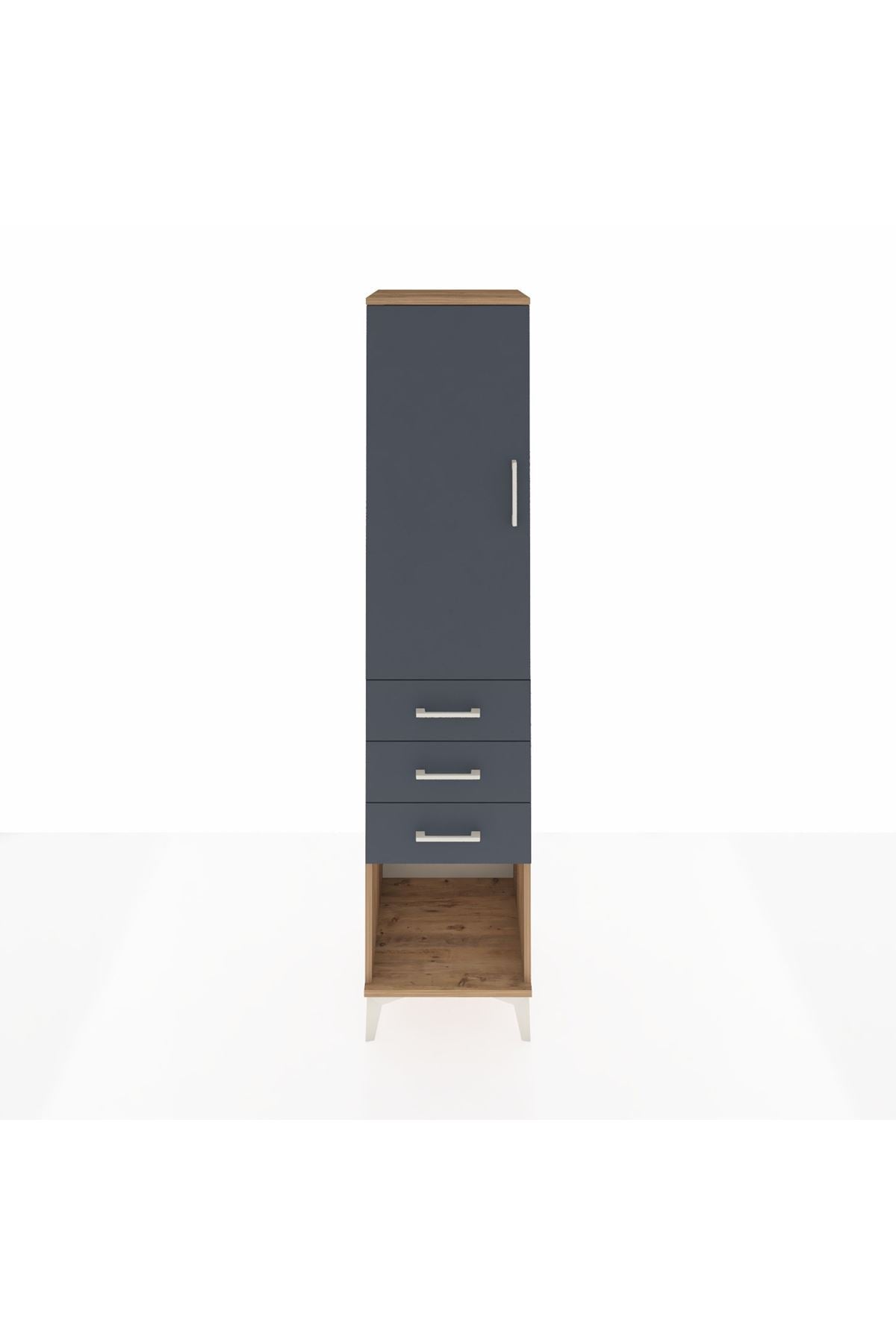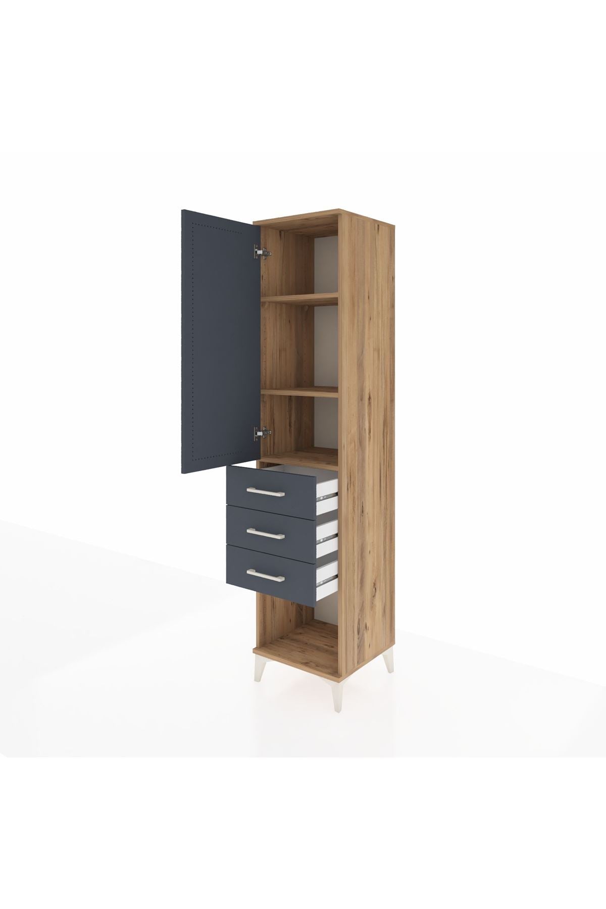 Hyperion Dolap 3 Raflı 3 Çekmeceli Tek Kapaklı 44x44x195 Çam-Antrasit