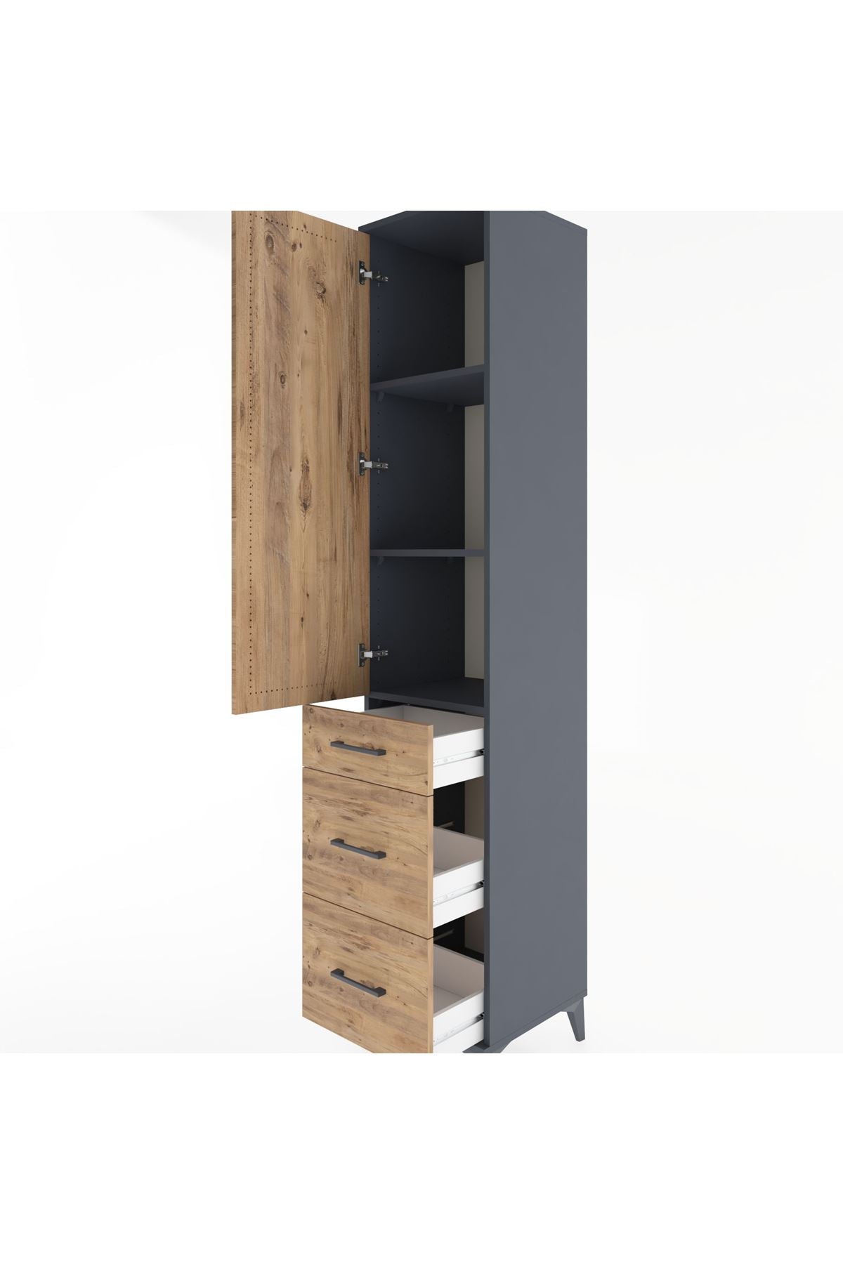 Hyperion Dolap 3 Raflı 3 Çekmeceli Tek Kapaklı 44x44x221 Antrasit-Çam
