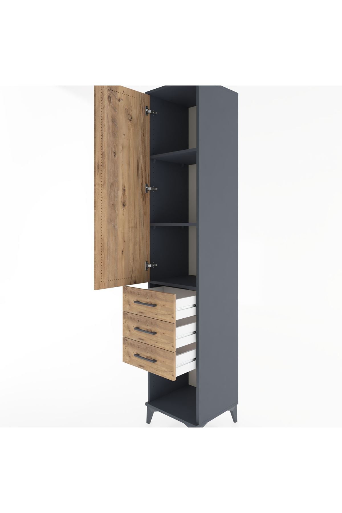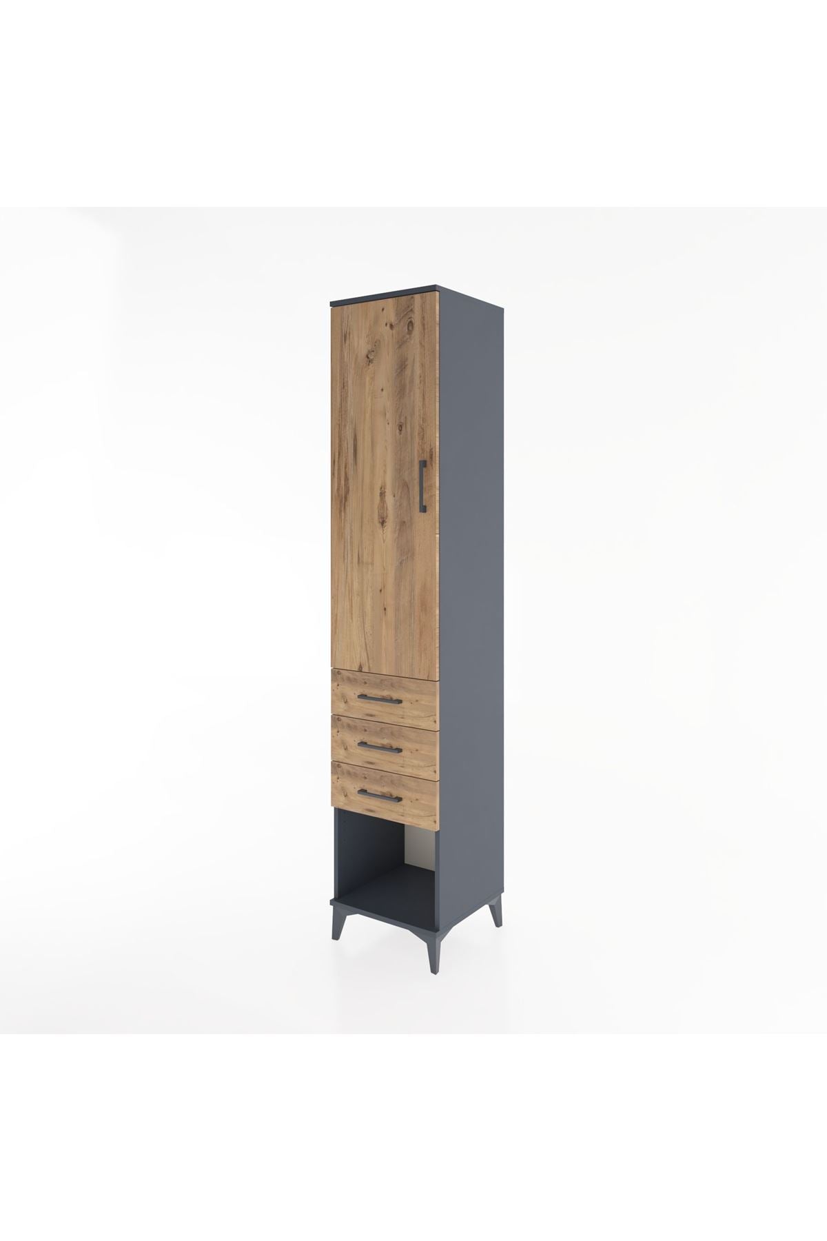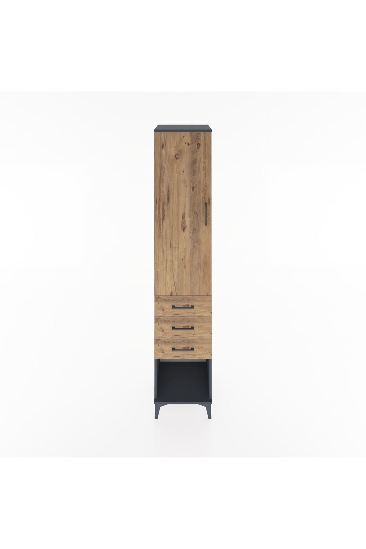 Hyperion Dolap 3 Raflı 3 Çekmeceli Tek Kapaklı 44x44x221 Antrasit-Çam