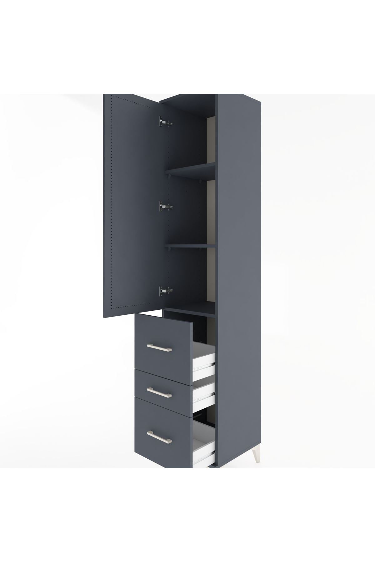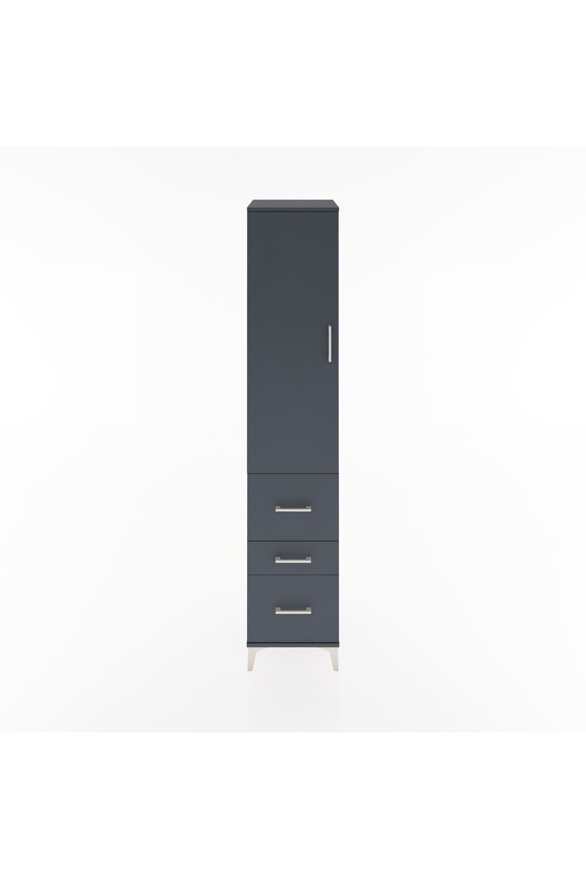 Hyperion Dolap 3 Raflı 3 Çekmeceli Tek Kapaklı 44x44x221 Antrasit-Antrasit