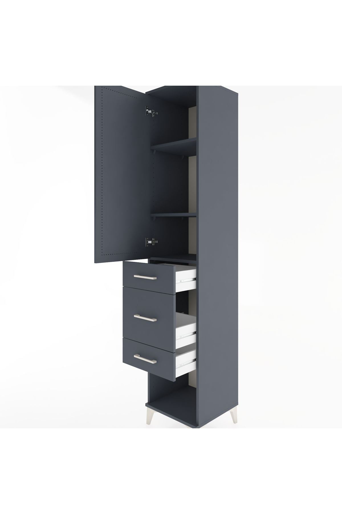 Hyperion Dolap 3 Raflı 3 Çekmeceli Tek Kapaklı 44x44x221 Antrasit-Antrasit