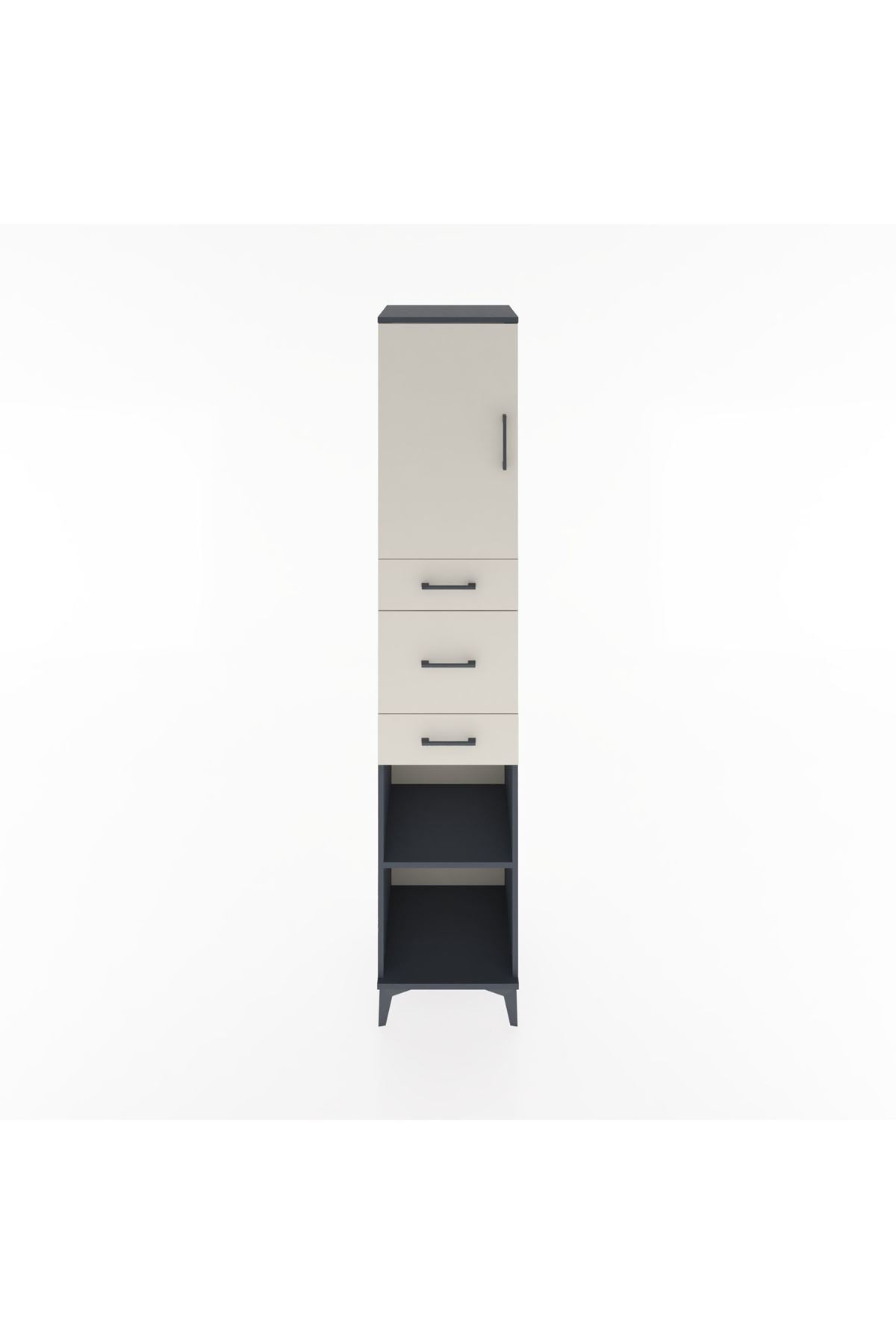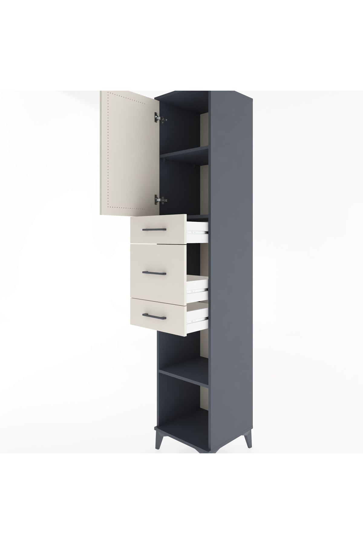 Hyperion Dolap 3 Raflı 3 Çekmeceli Tek Kapaklı 44x44x221 Antrasit-Aytaşı