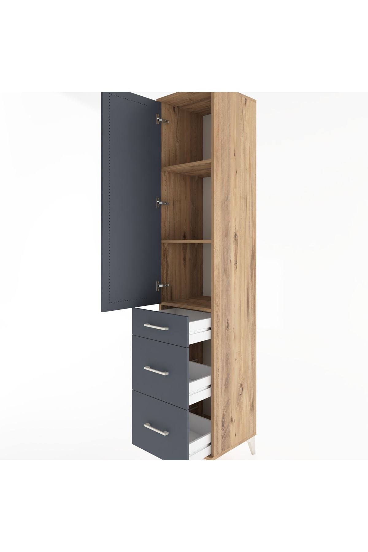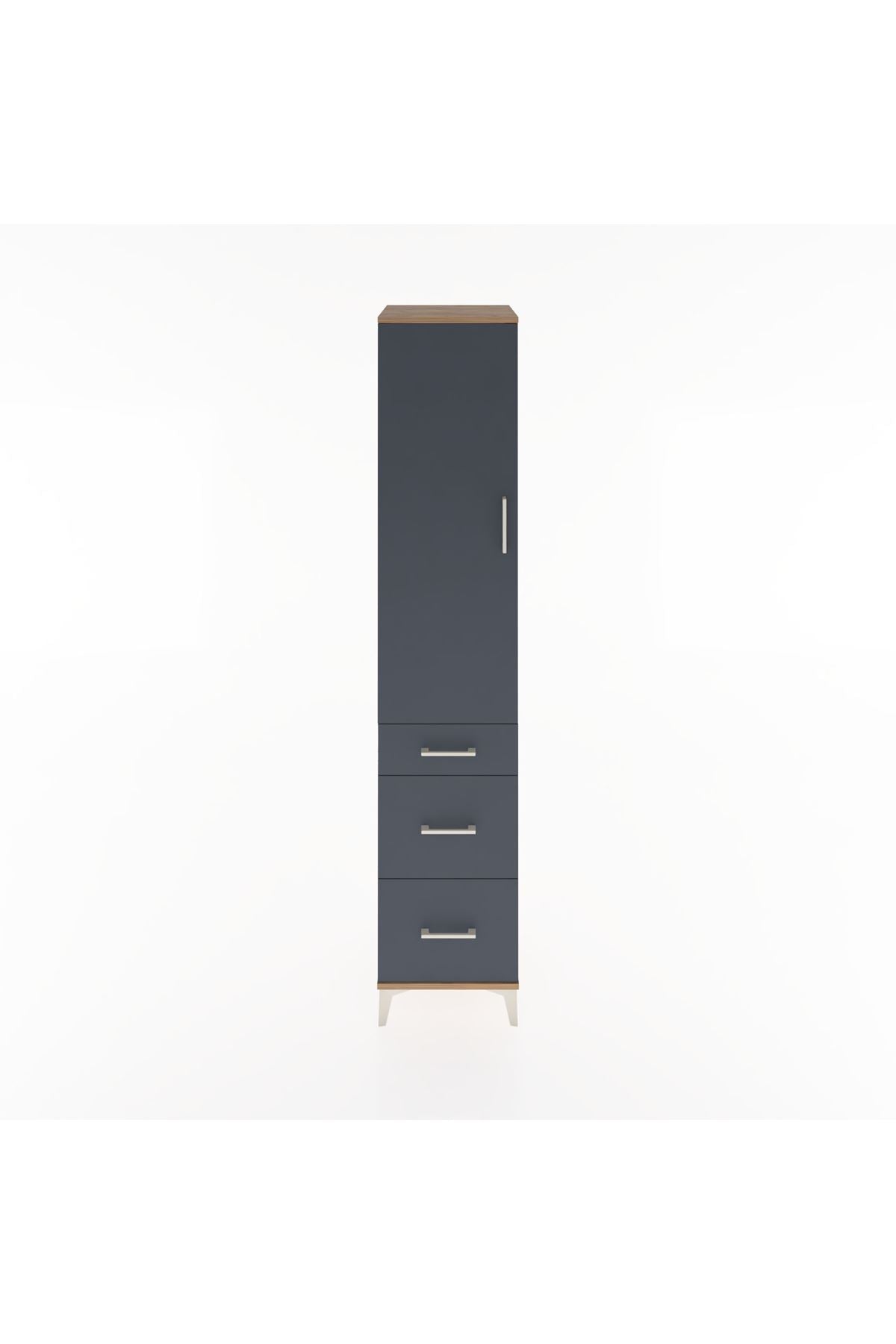 Hyperion Dolap 3 Raflı 3 Çekmeceli Tek Kapaklı 44x44x221 Çam-Antrasit