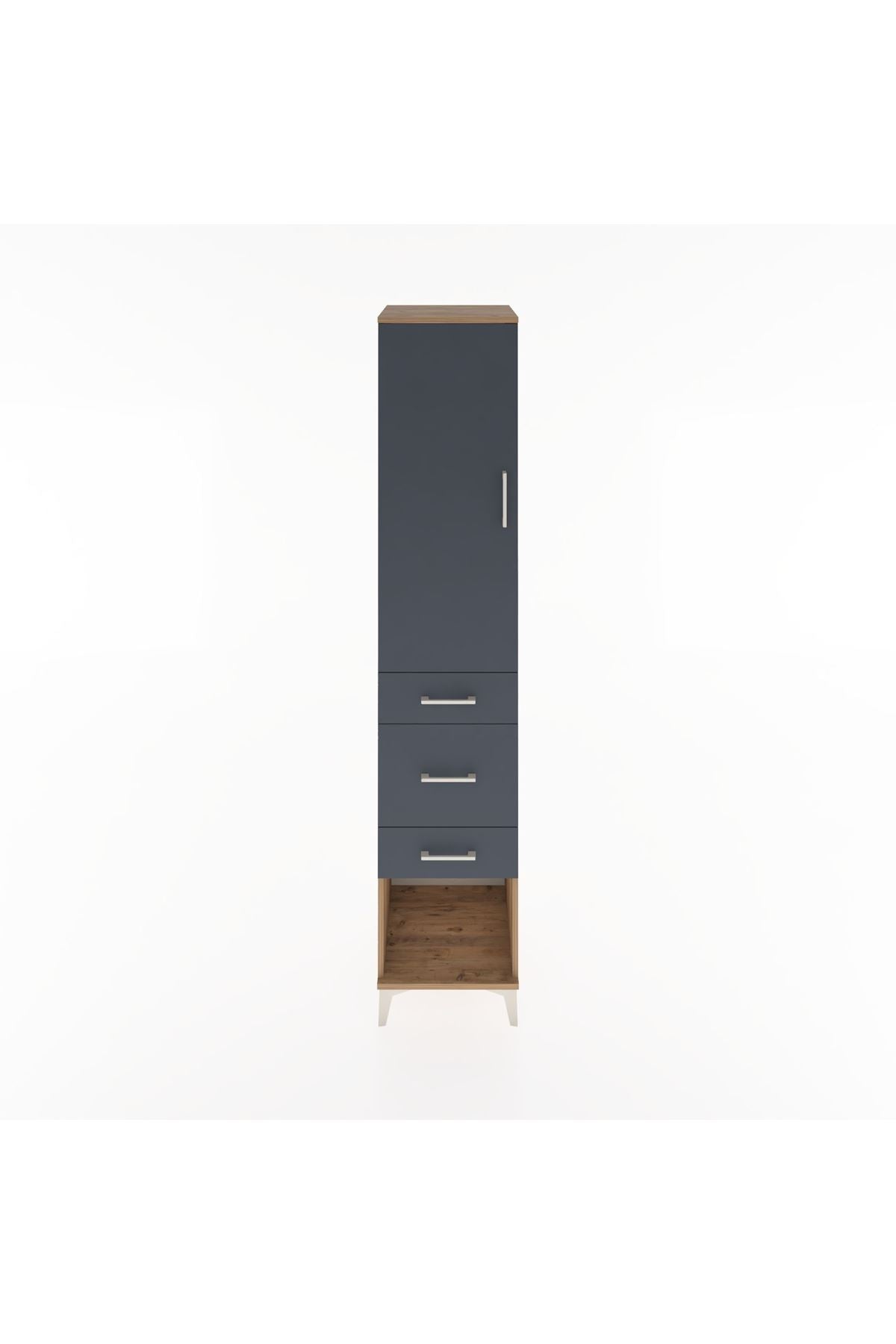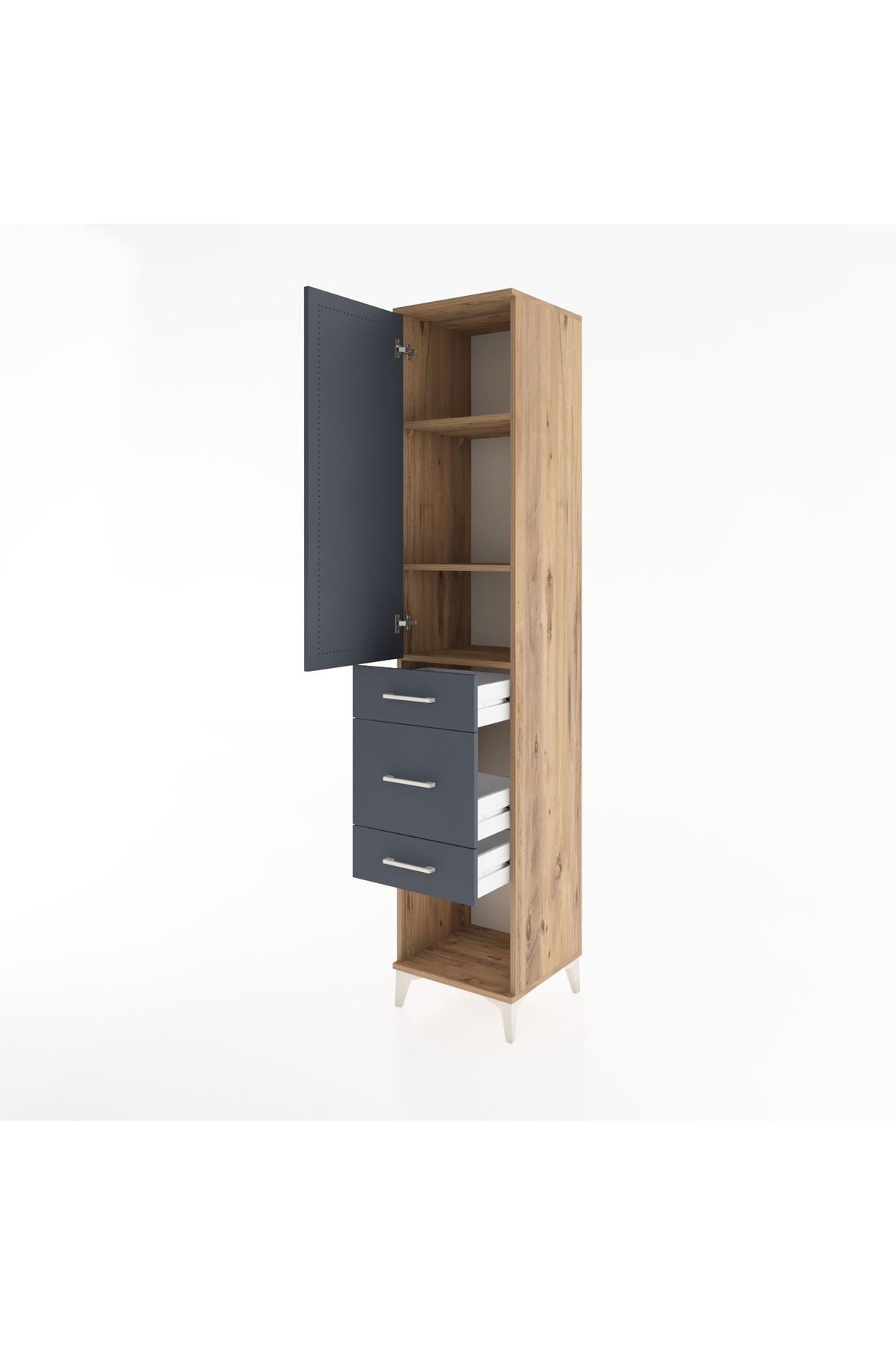 Hyperion Dolap 3 Raflı 3 Çekmeceli Tek Kapaklı 44x44x221 Çam-Antrasit