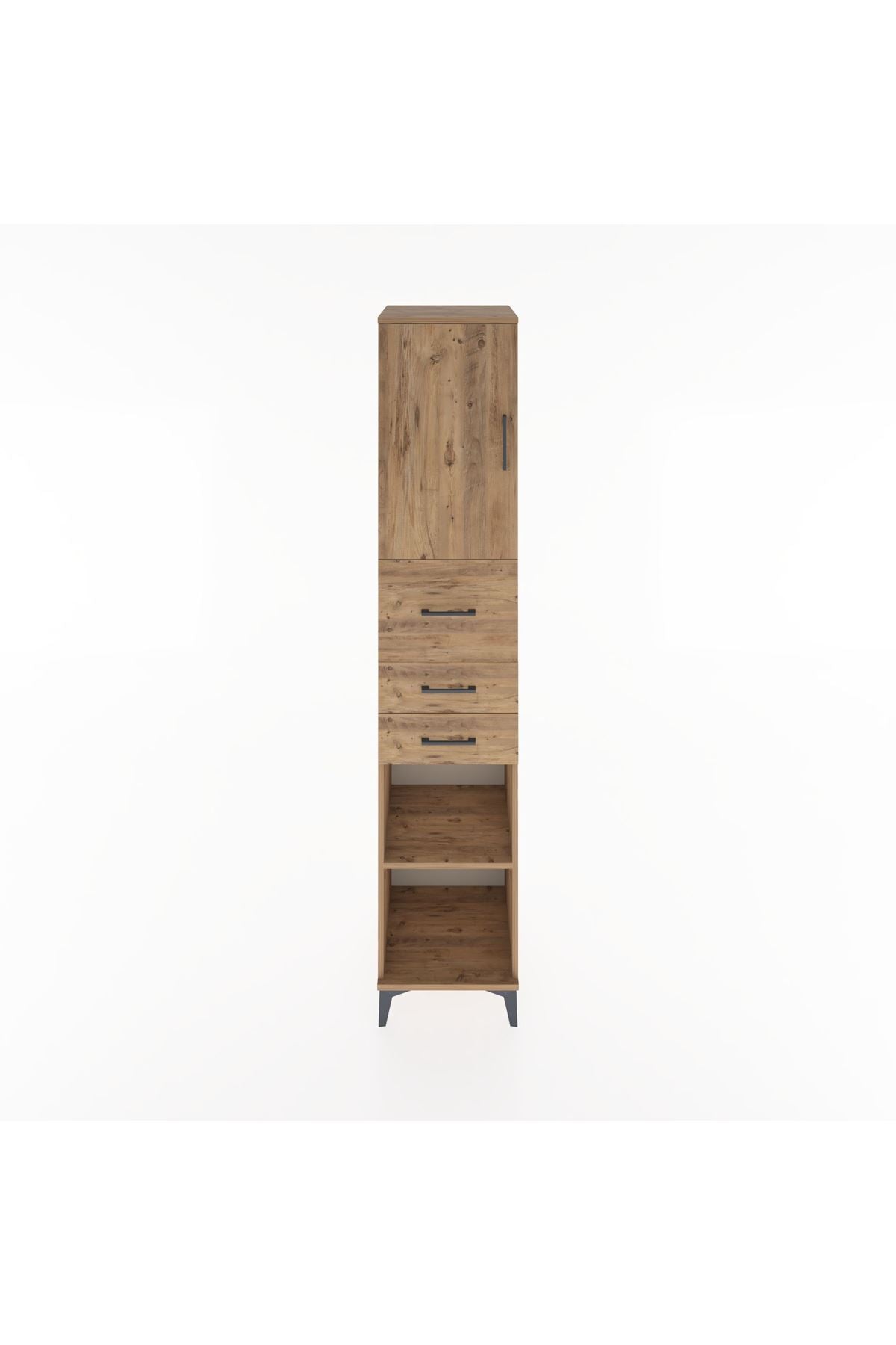 Hyperion Dolap 3 Raflı 3 Çekmeceli Tek Kapaklı 44x44x221 Çam-Çam