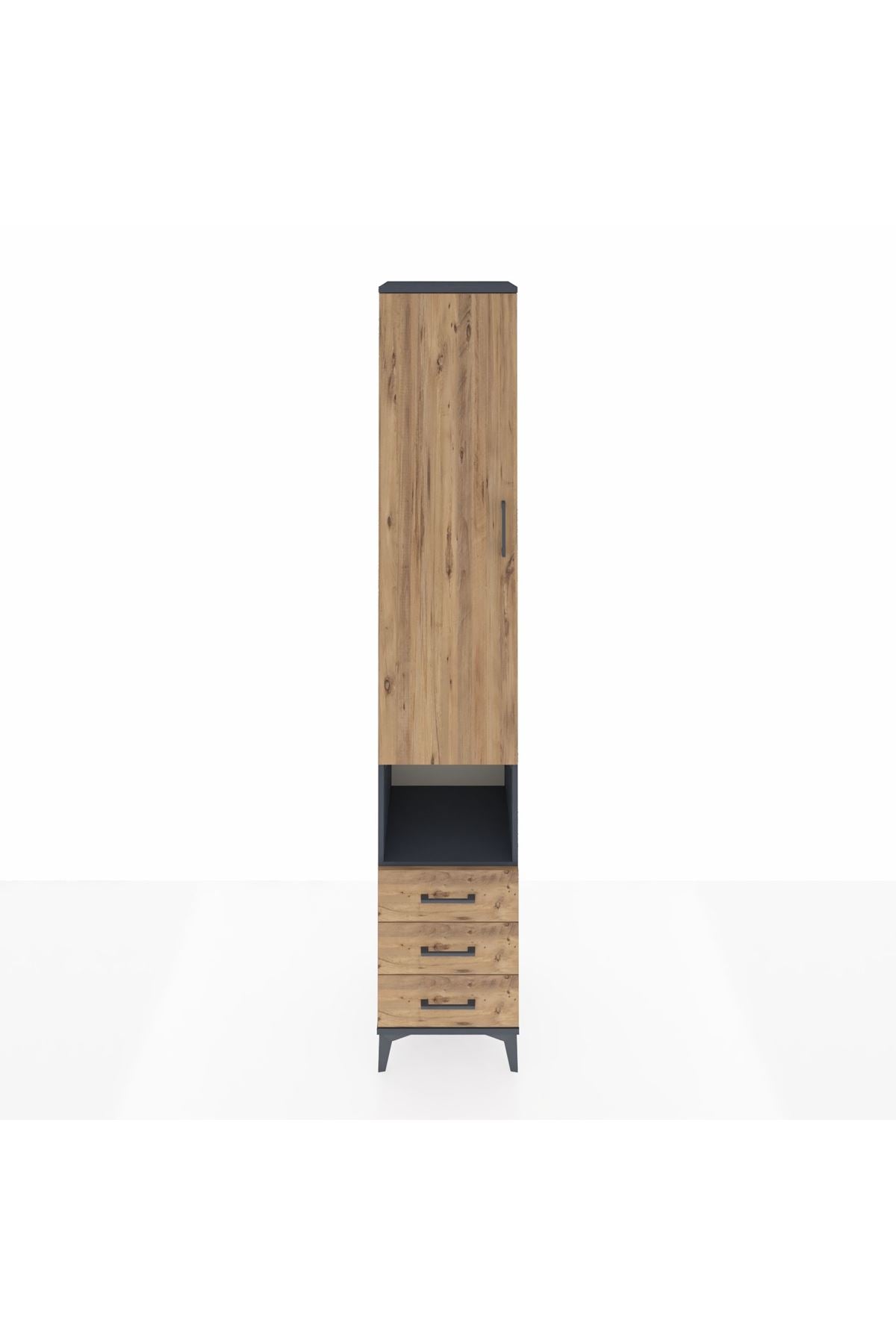 Hyperion Dolap 3 Raflı 3 Çekmeceli Tek Kapaklı 44x44x243 Antrasit-Çam