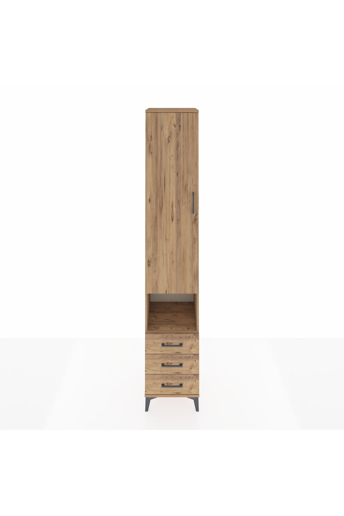 Hyperion Dolap 3 Raflı 3 Çekmeceli Tek Kapaklı 44x44x243 Çam-Çam
