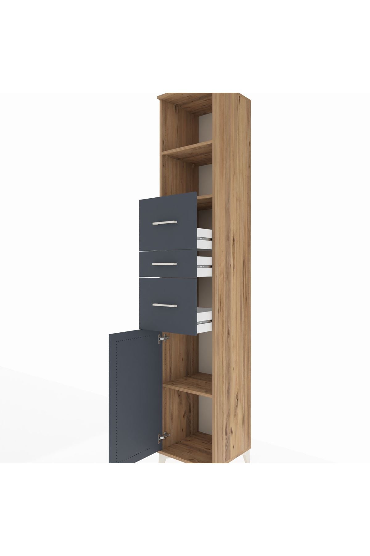 Hyperion Dolap 3 Raflı 3 Çekmeceli Tek Kapaklı 44x44x243 Çam-Antrasit