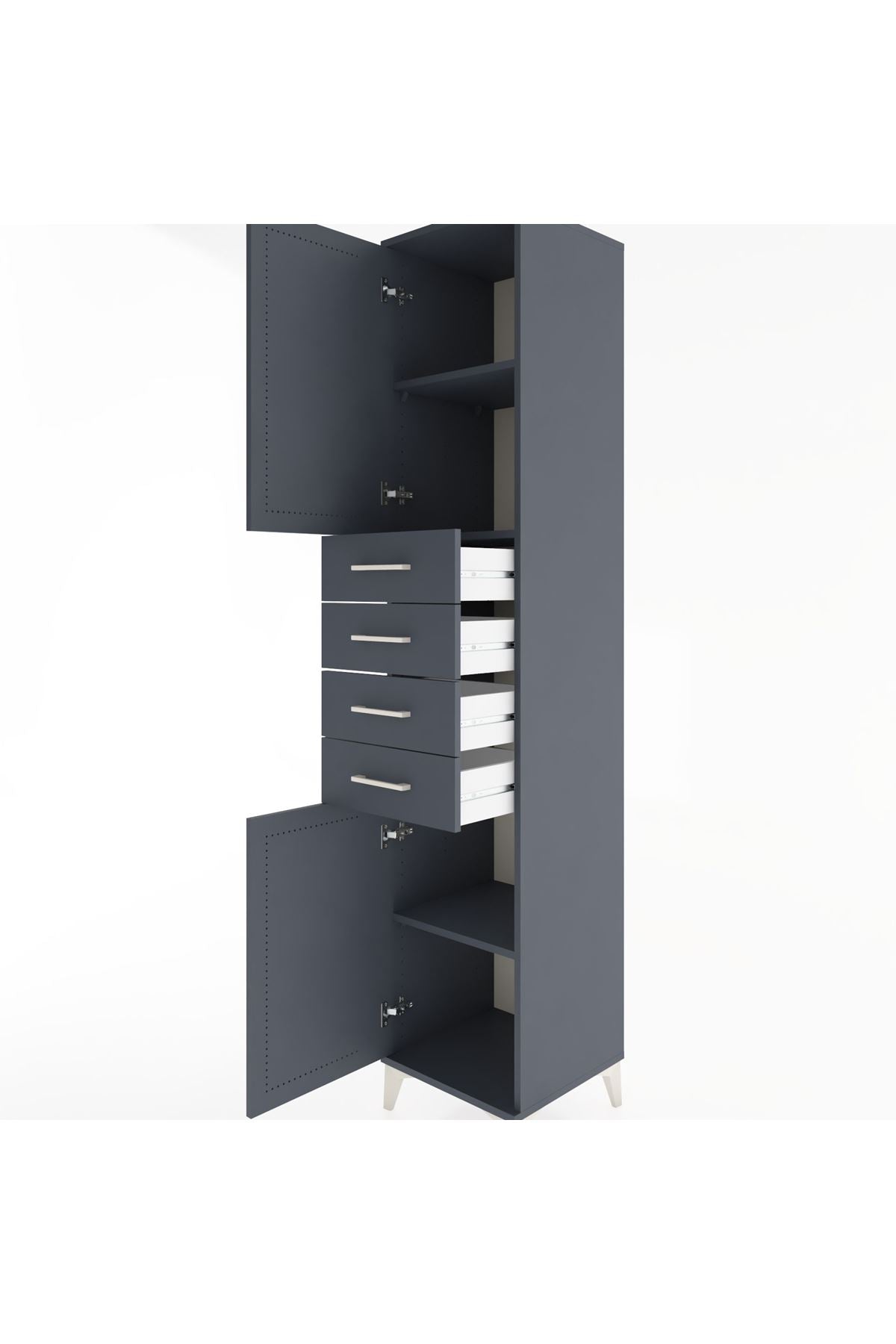 Hyperion Dolap 3 Raflı 4 Çekmeceli 2 Kapaklı 44x44x221 Antrasit-Antrasit
