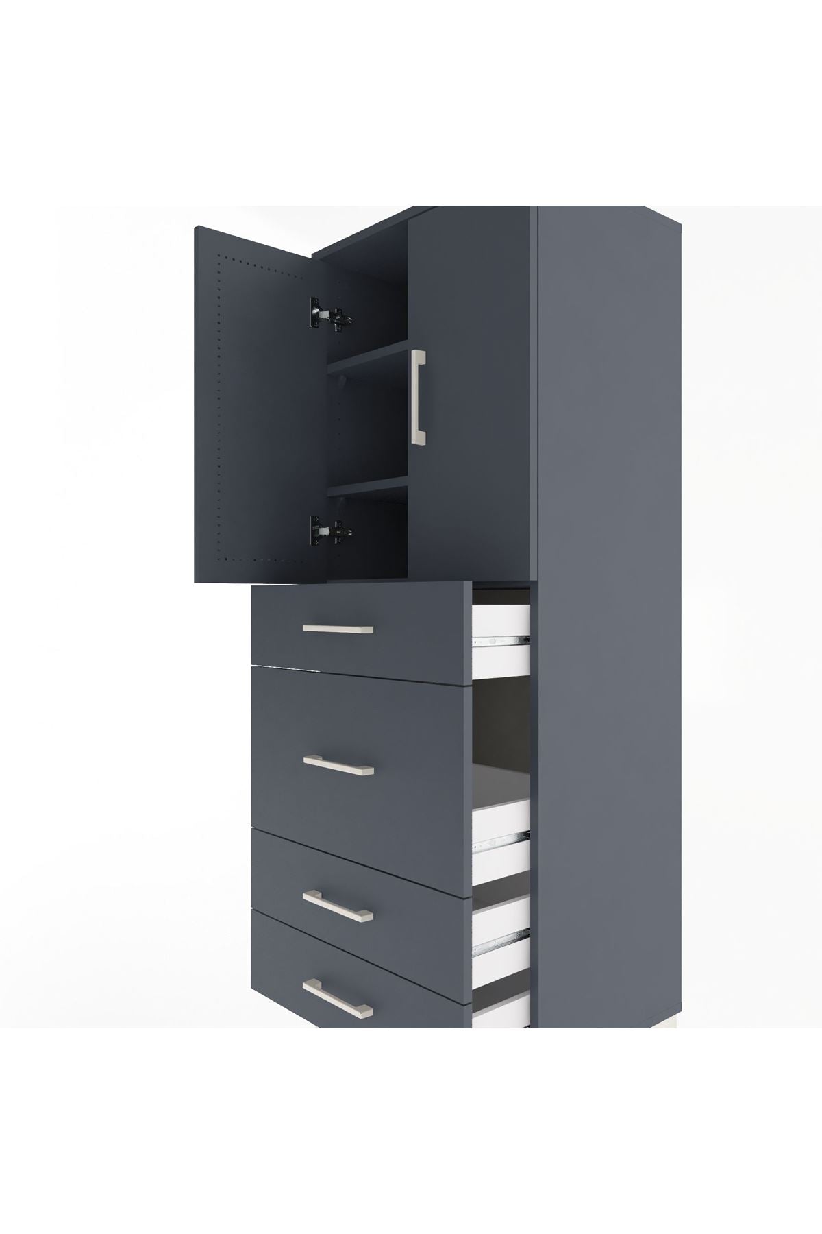 Hyperion Dolap 3 Raflı 4 Çekmeceli 2 Kapaklı 60x44x163 Antrasit-Antrasit