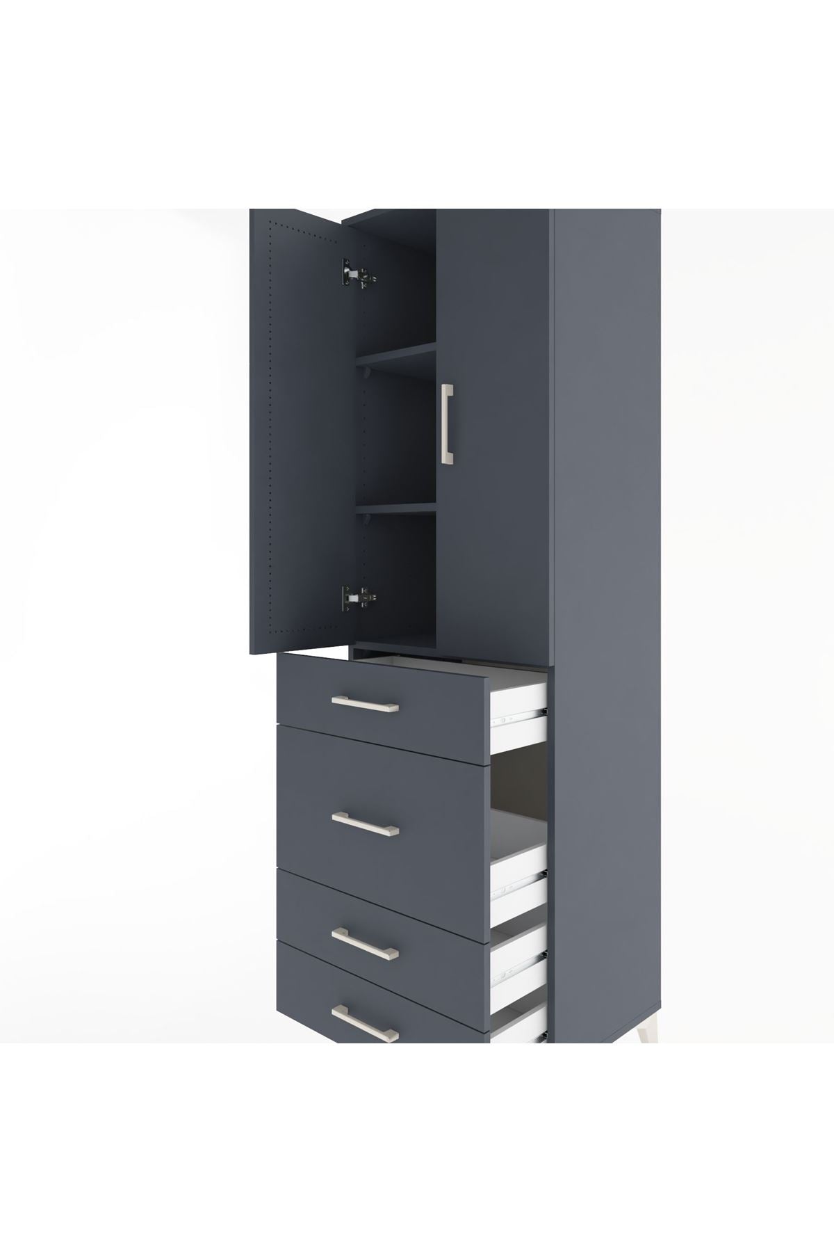 Hyperion Dolap 3 Raflı 4 Çekmeceli 2 Kapaklı 60x44x195 Antrasit-Antrasit