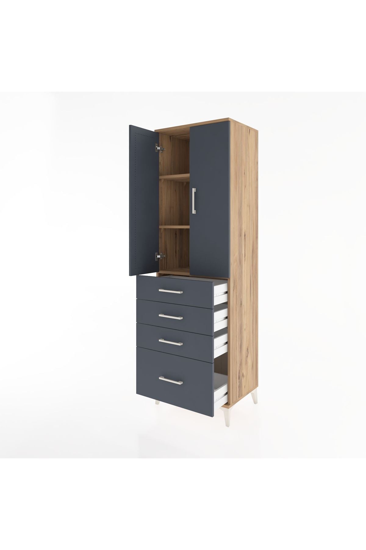 Hyperion Dolap 3 Raflı 4 Çekmeceli 2 Kapaklı 60x44x195 Çam-Antrasit